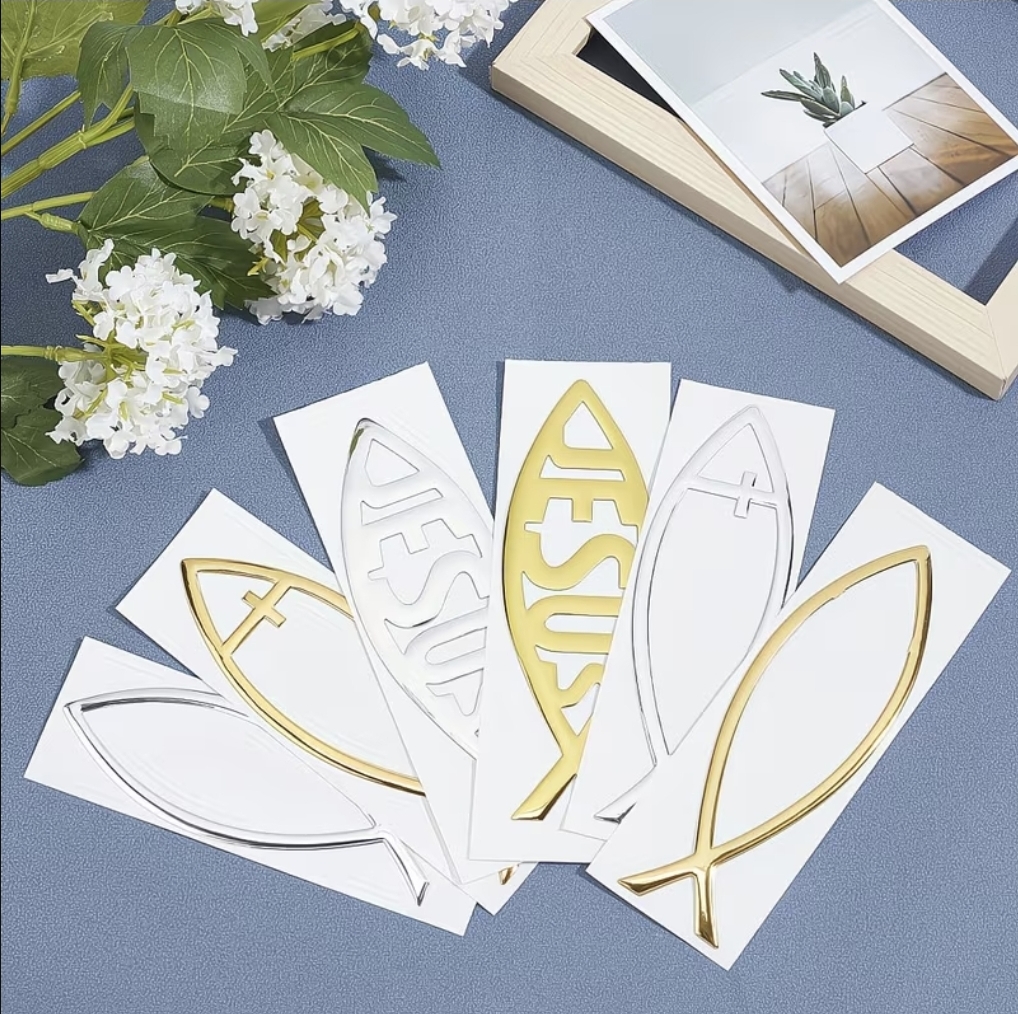 З написом Jesus, з хрестом або Рибка.Розмір 155х50мм.