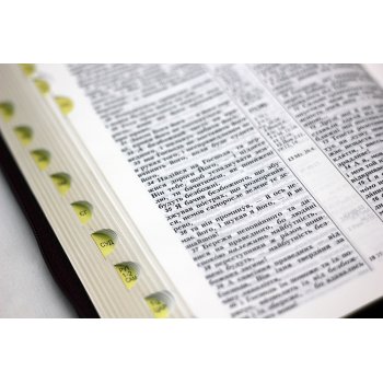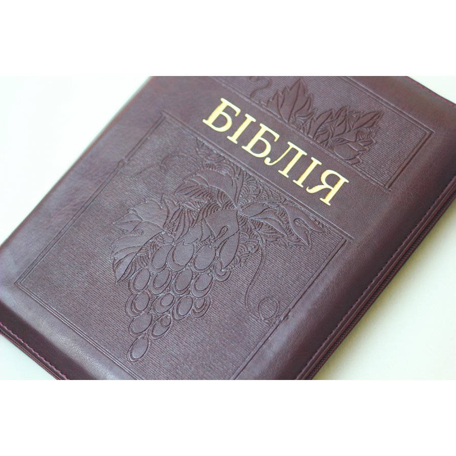 Додаткова інформація: палітурка м’яка, замінник шкіри, вказівники для пошуку біблійних книг, обріз книжкового блоку золото, стрічка-закладка, застібка-блискавка.