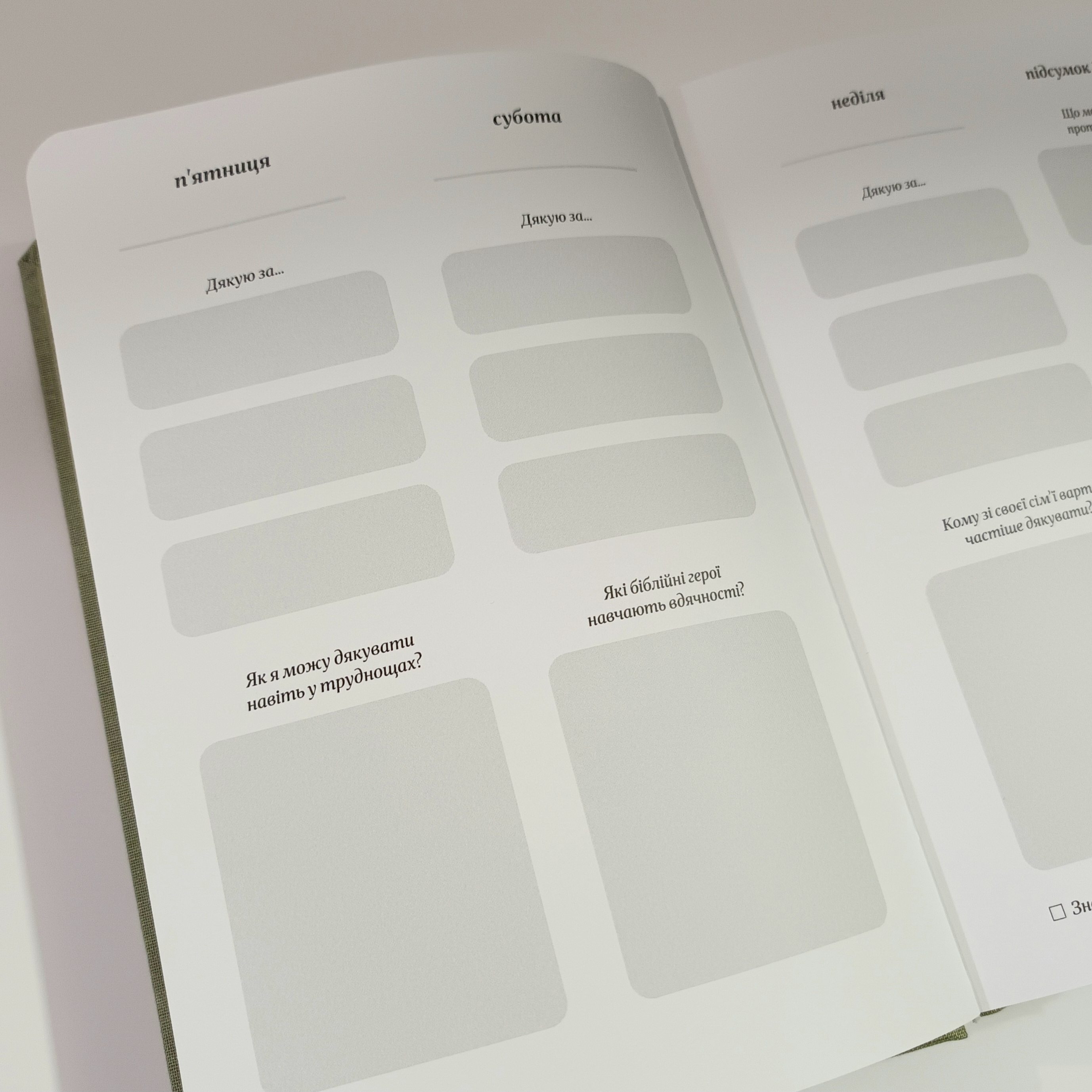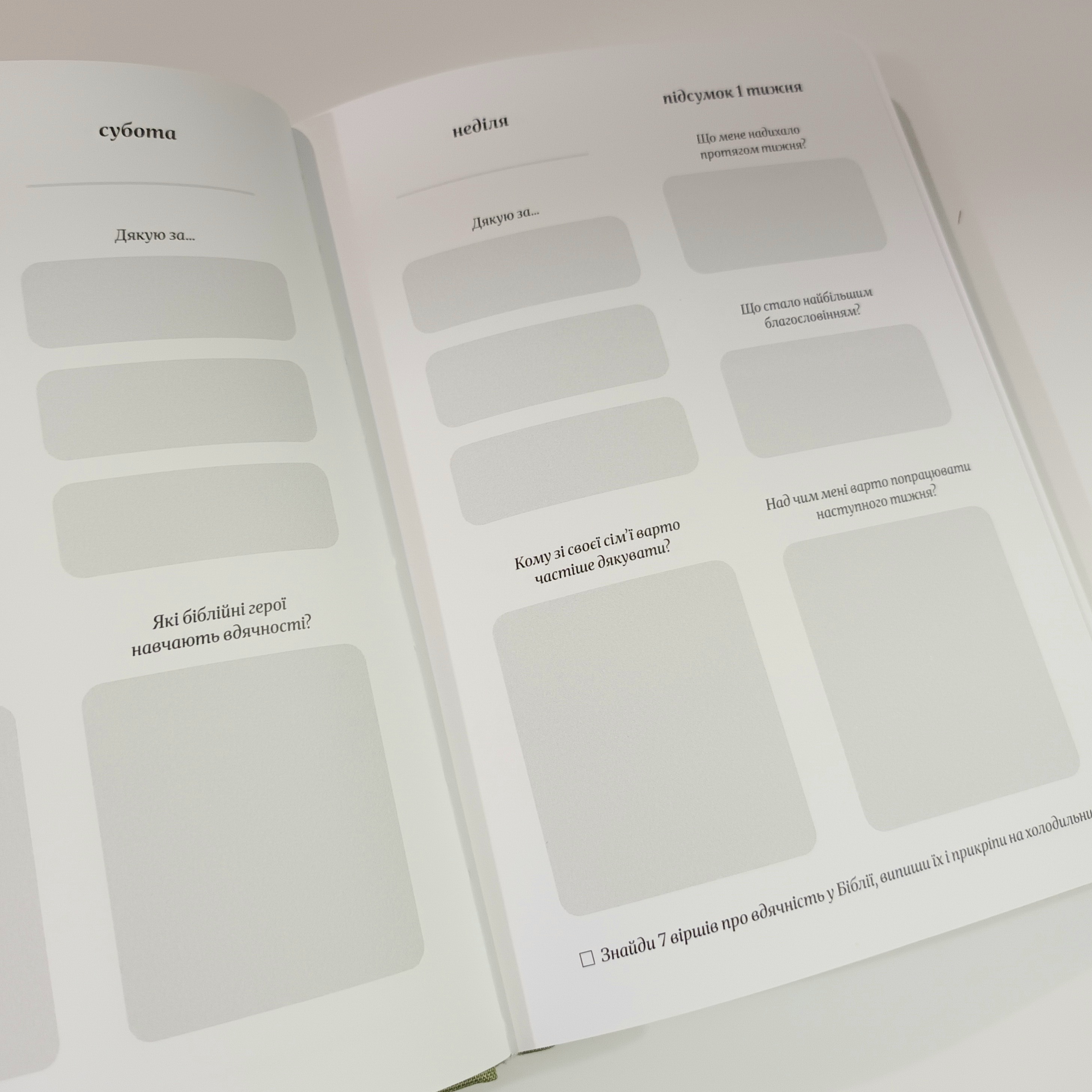 Щоденник вдячності — інструмент для радості та благословіння. Щодня записуй три речі, за які вдячний, і роздумуй над запитаннями, а щотижня виконуй нове завдання.