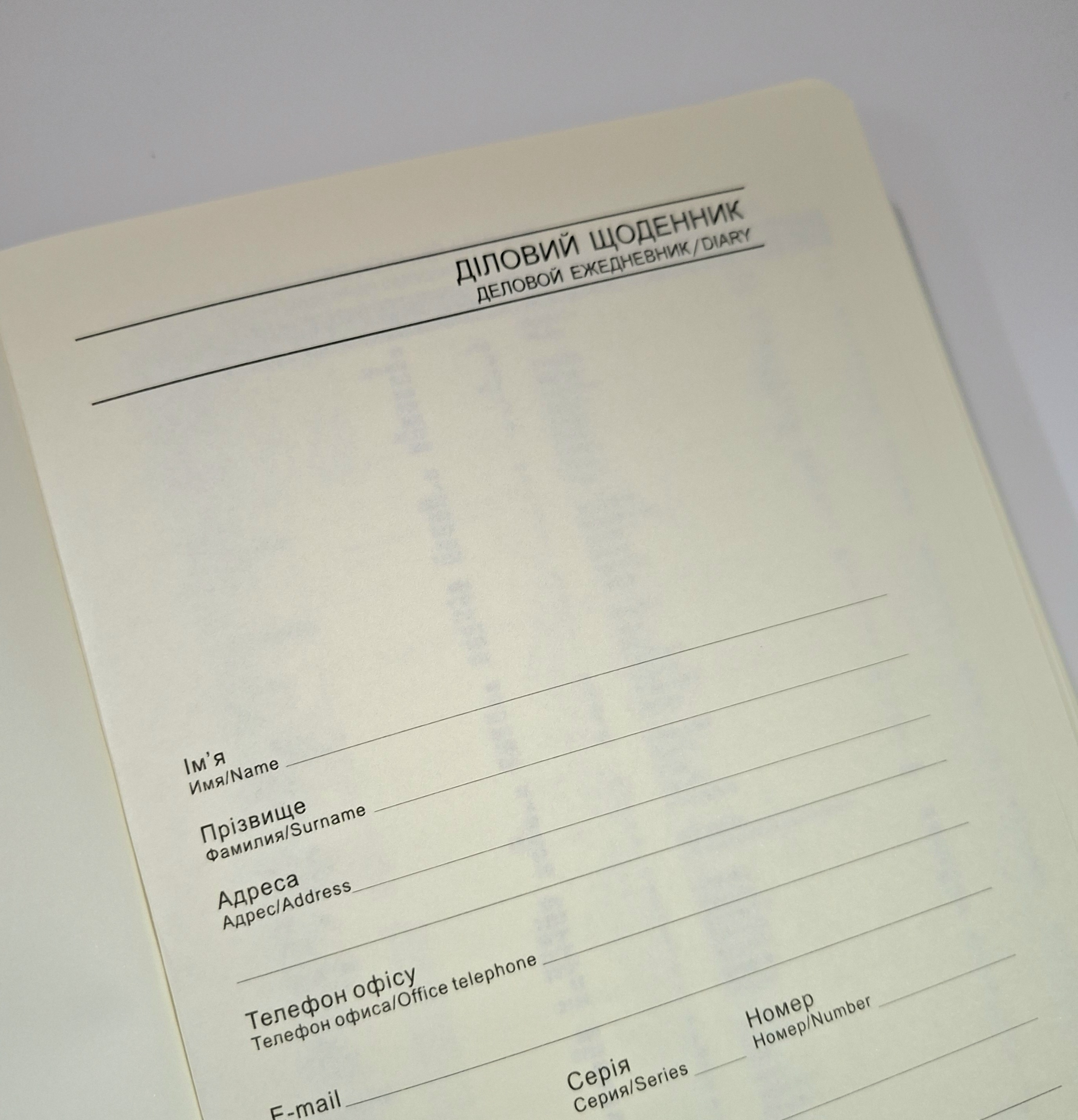 - обкладинка із замінника шкіри, синій;