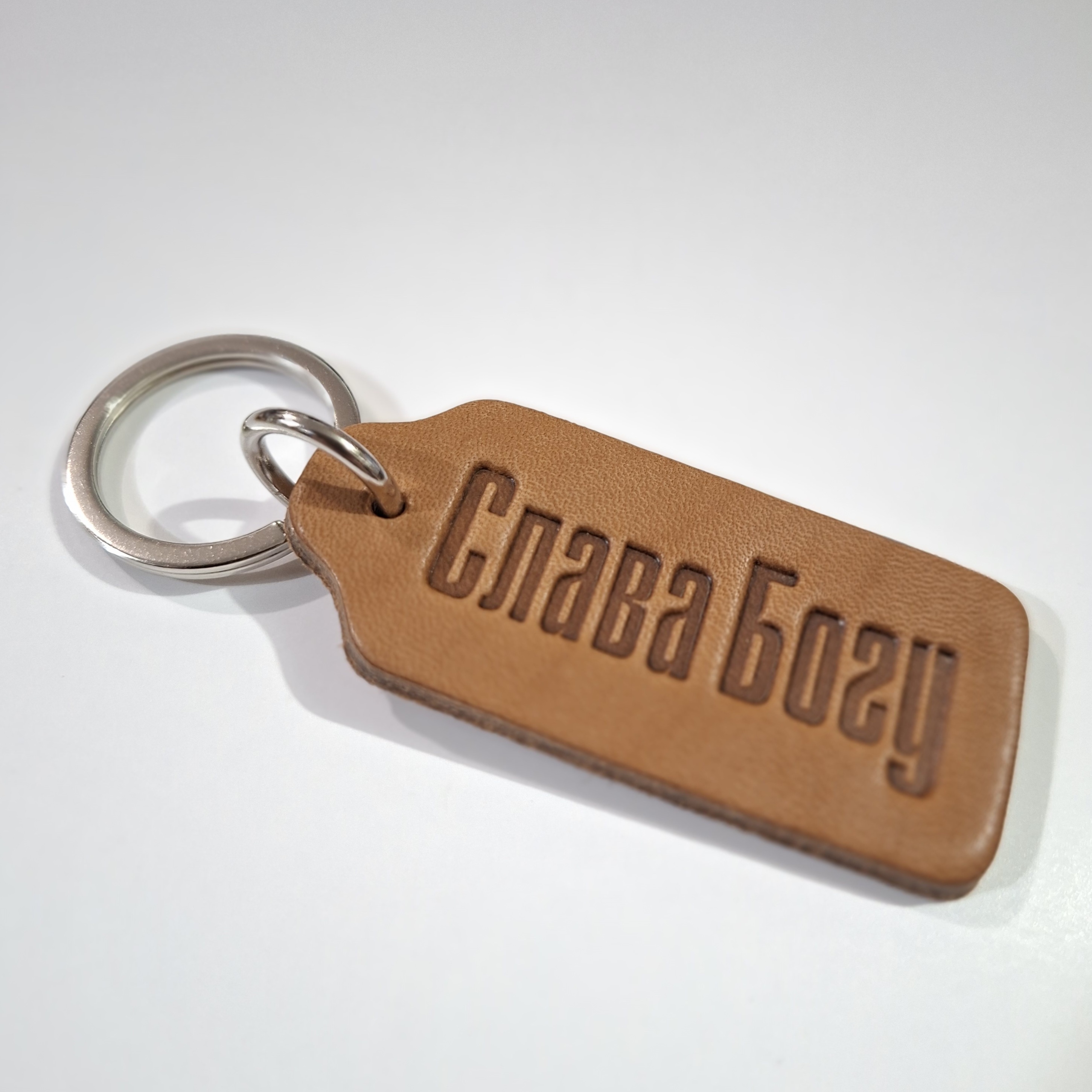 Брелок з натуральної шкіри, розміром 60х25х3мм.