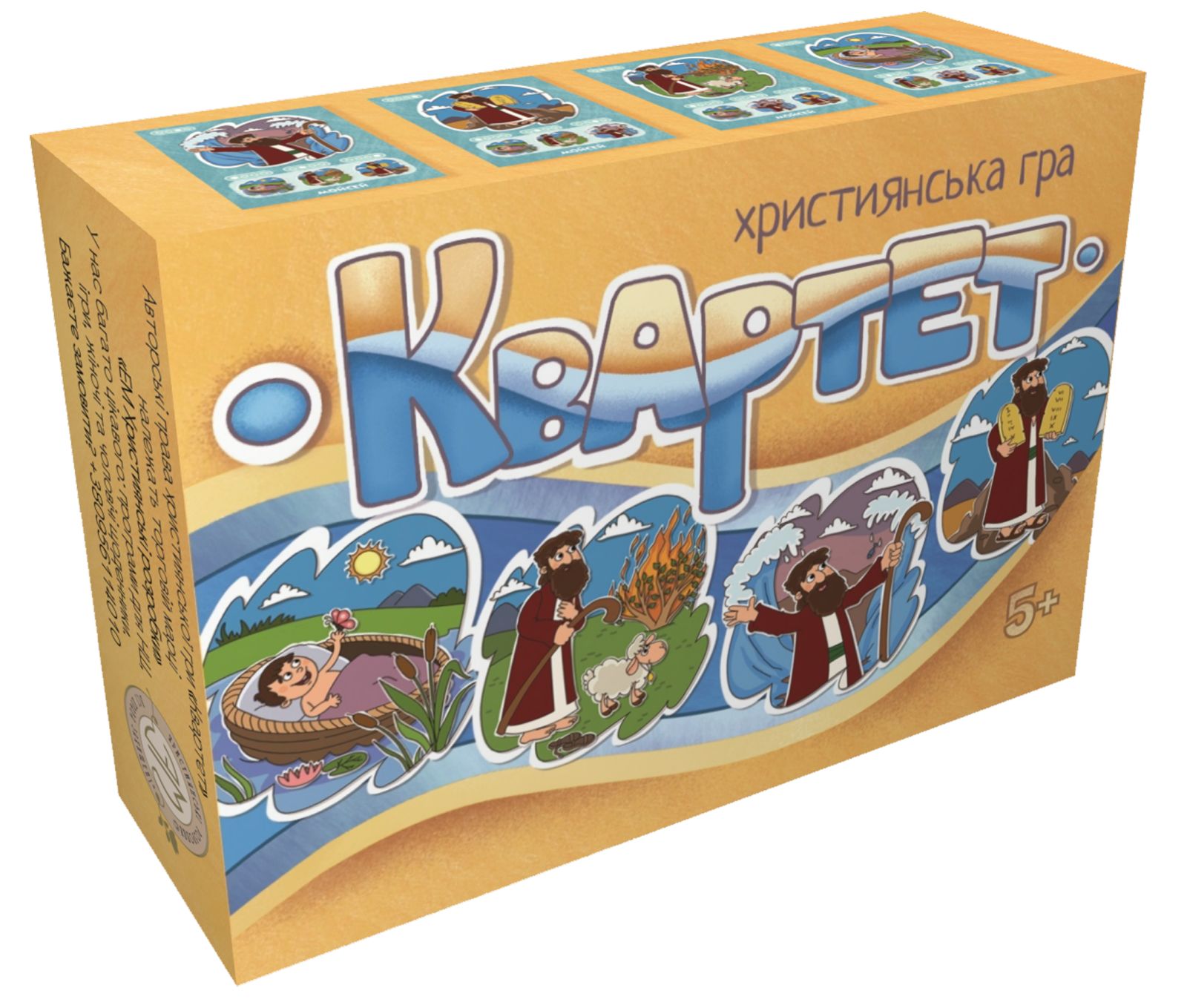 Квартет - це християнська гра, яка розвиває швидкість реакції та мислення, креативність, пам’ять, інтелект, увагу, кмітливість, терпіння і посидучість.Та найголовніше - вона знайомить учасників з бібліними історіями, які вони можуть відтворити відповідно до зібраних квартетів.