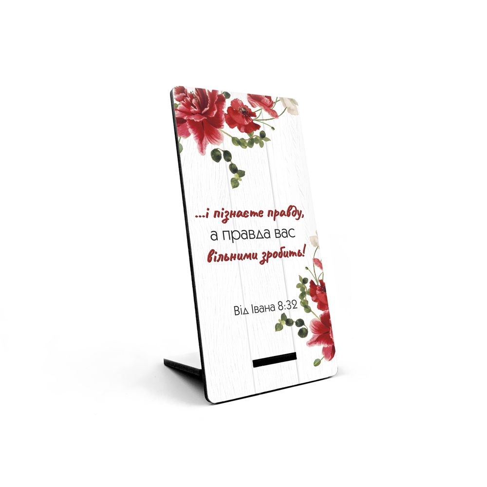 Декоративна табличка з мотивуючими написами та цитатами з Біблії стане доречним подарунком або ж родзинкою Вашого інтер'єру. Просто відламайте нижню частину таблички та вставте її в спеціальний отвір зі зворотнього боку. Табличку можна поставити на будь-яку поверхню. Розмір – 7,5х15 см. Матеріал – ХДФ. УФ-друк.