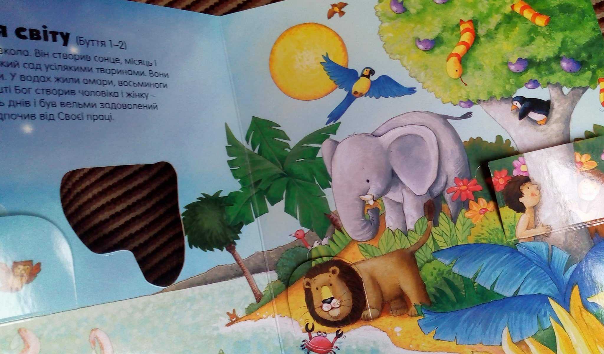 Тринадцять найулюбленіших історій зі Старого і Нового Заповітів містять 32 потайних віконця, за якими на них чекають веселі й несподівані відкриття. Для більш детального ознайомлення, до кожної оповіді подано біблійний вказівник.