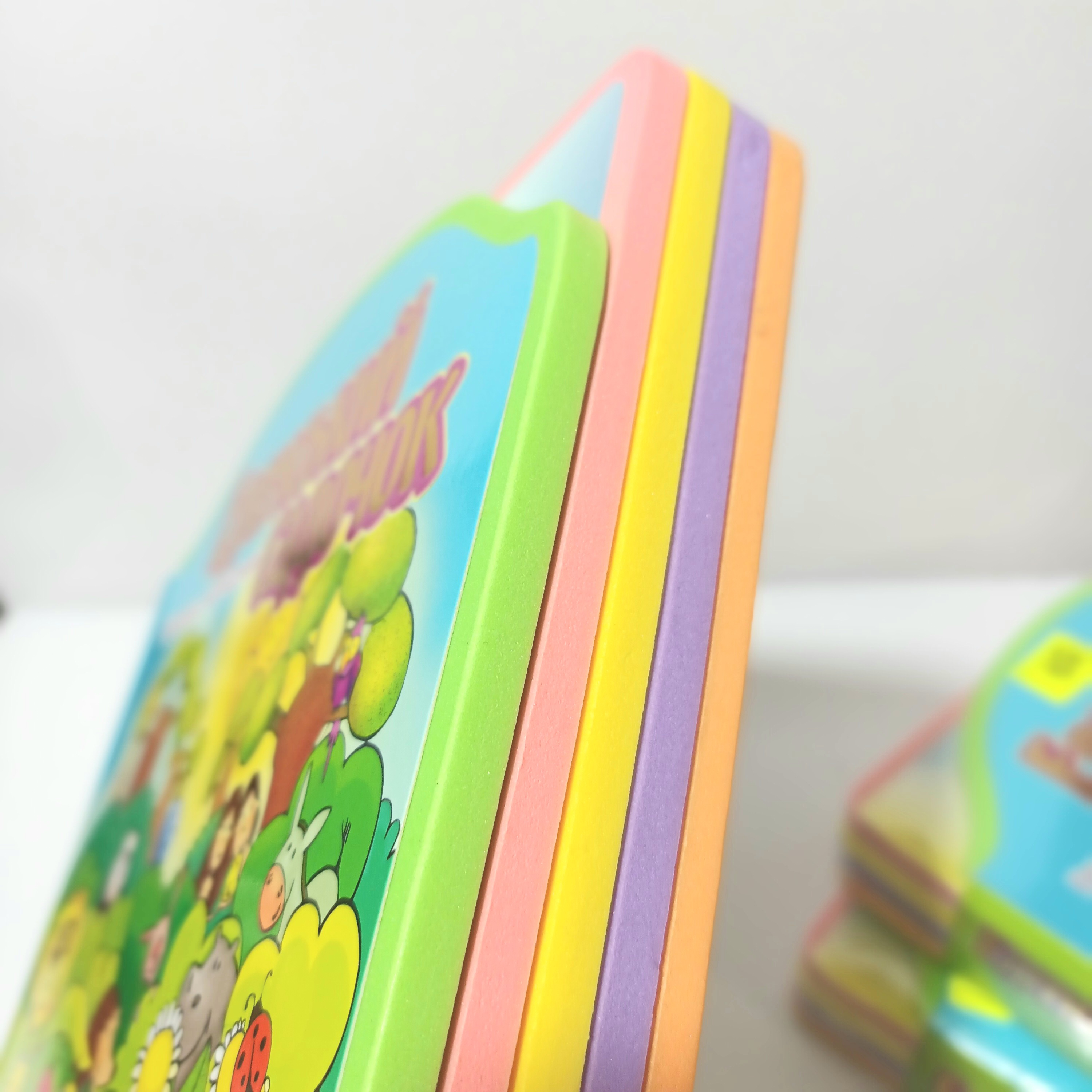 - Книга фігурної форми. ЇЇ сторінки виготовлені з м’якого різнокольорового піноматеріалу товщиною 4 мм (етиленвінілацетат) безпечного для дітей.