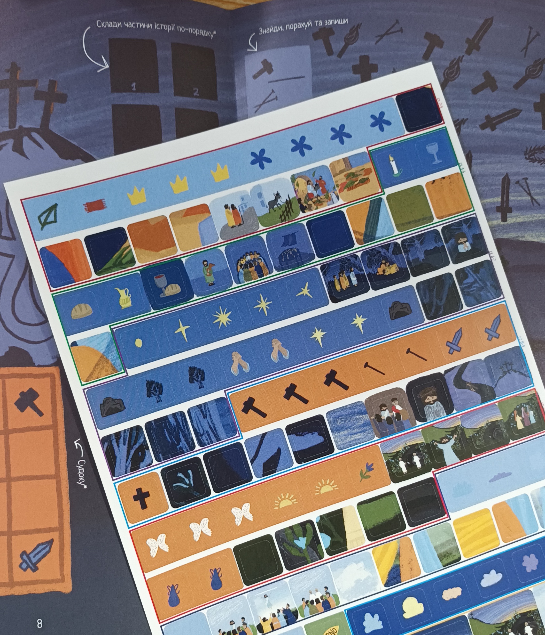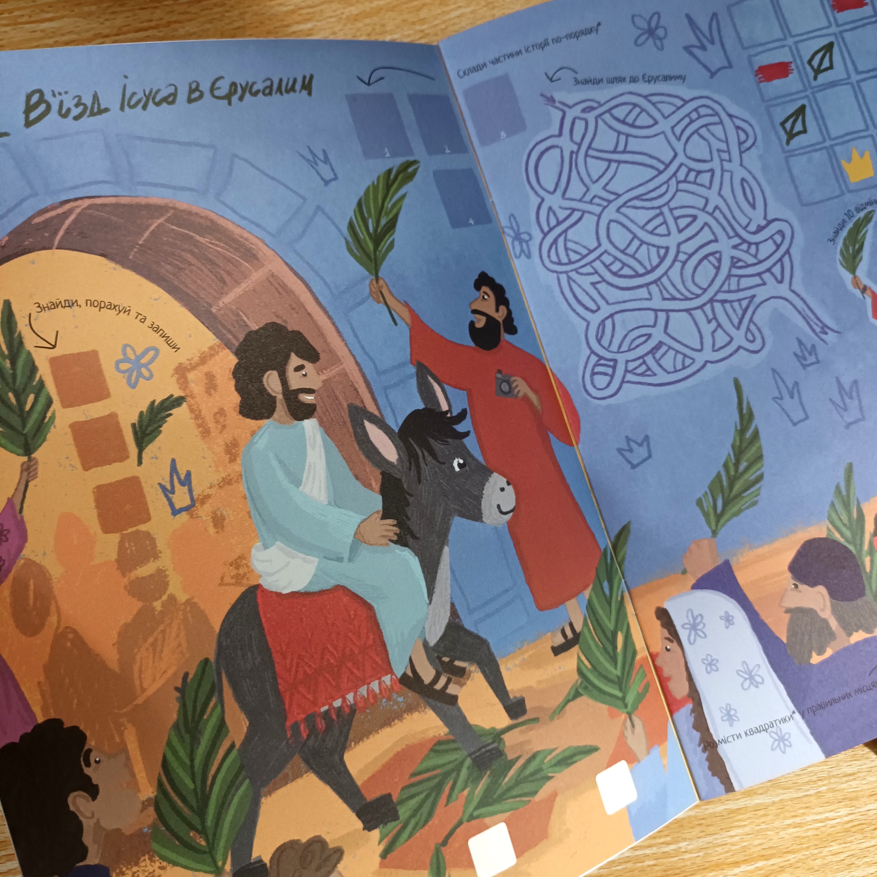 Пасхальна історія - це чудова книга з різними активностями для діток певної вікової категорії. В ній зібрані шість тем Пасхальної історії, а саме: 1. В’їзд В Єрусалим. 2. Таємна вечеря. 3. Молитва в саду. 4. Суд і смерть. 5. Воскресіння Ісуса. 6. Вознесіння. 7. Повторення.