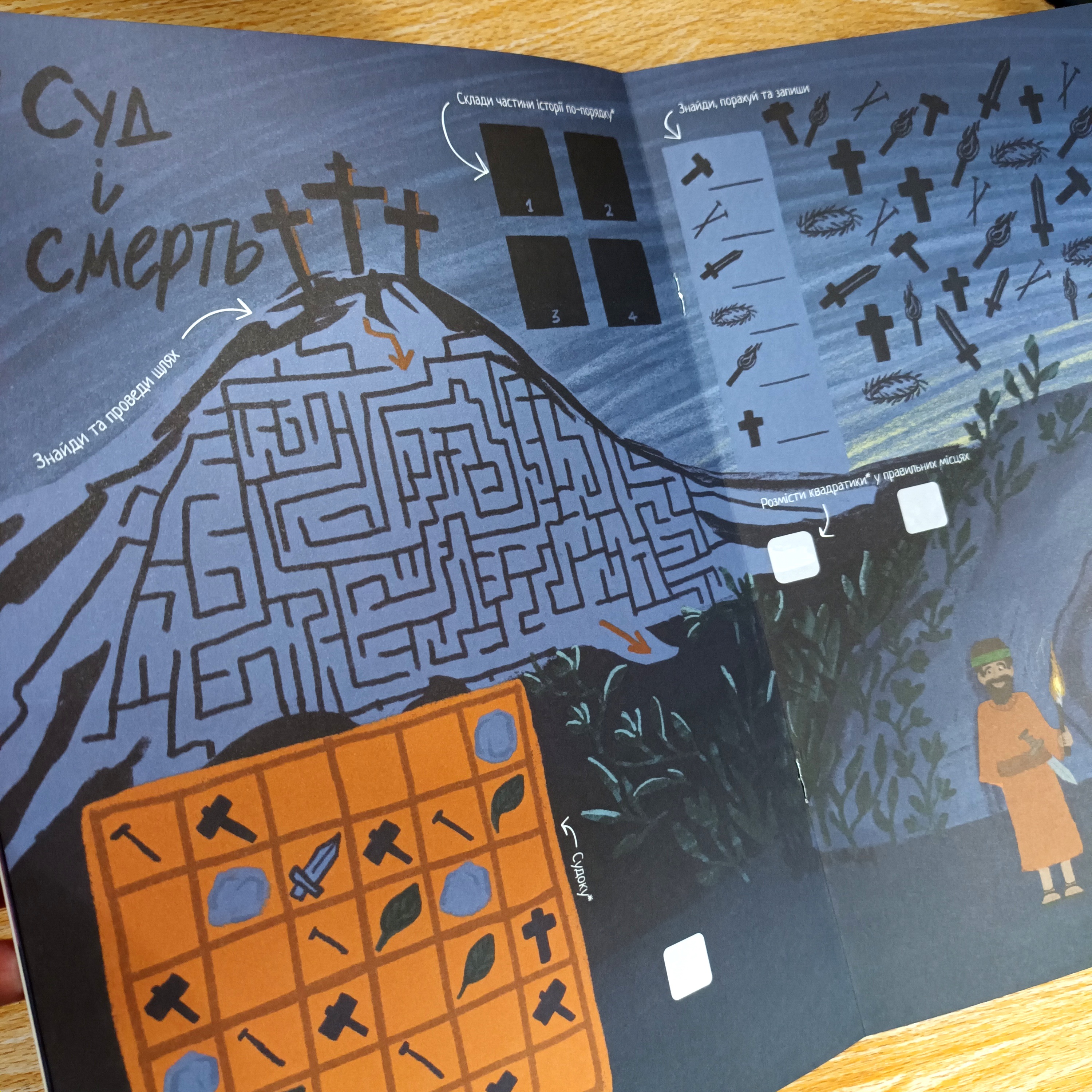 Активності: лабіринти, детектив, судоку, знайти відмінності, заповнити пропуски, скласти деталі історії; викреслити предмет, якого немає в цій історії.