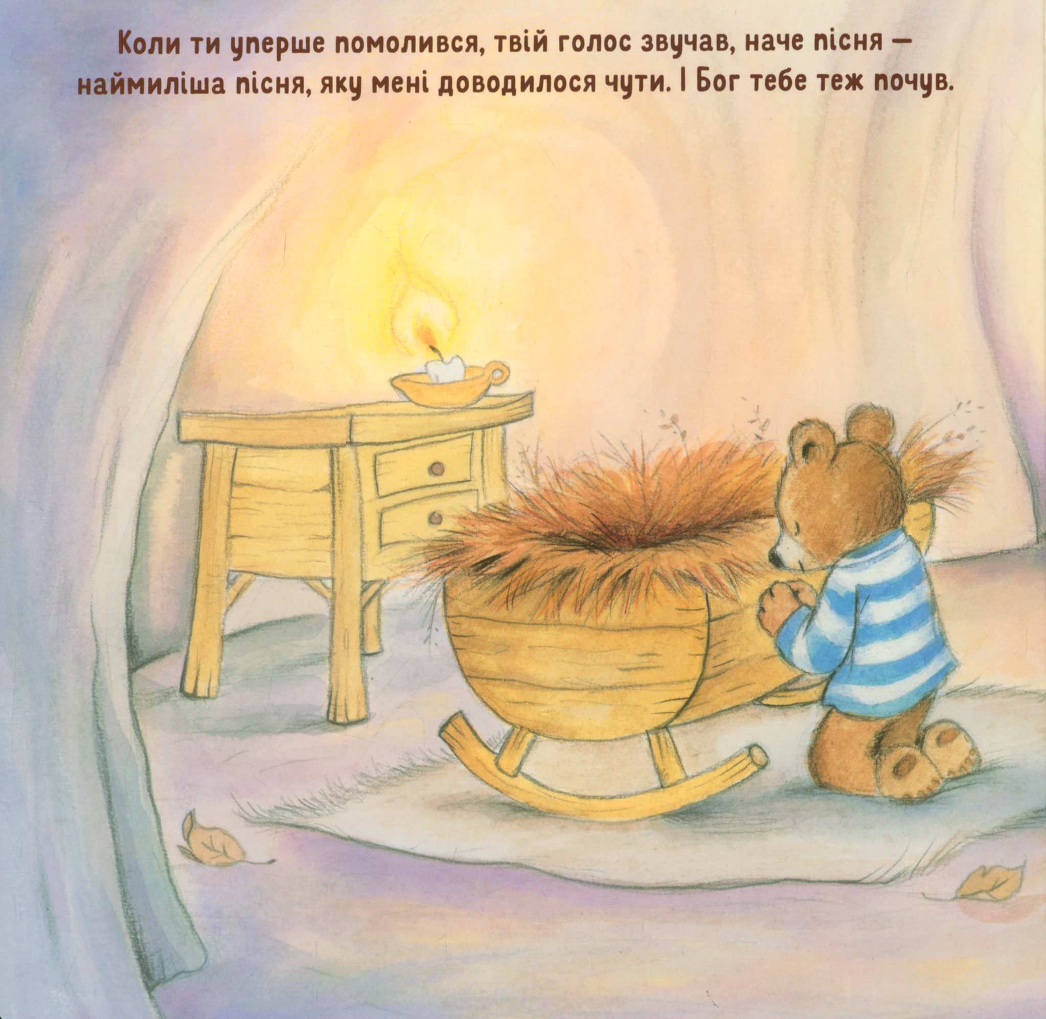 Щодня Мама-Ведмедиця молиться за Мале Ведмежа — так було, так є і завжди буде. Вмощуйтеся зручніше і читайте вашій дитині про те, що вона теж щоденно огорнута молитвою і любов’ю.
