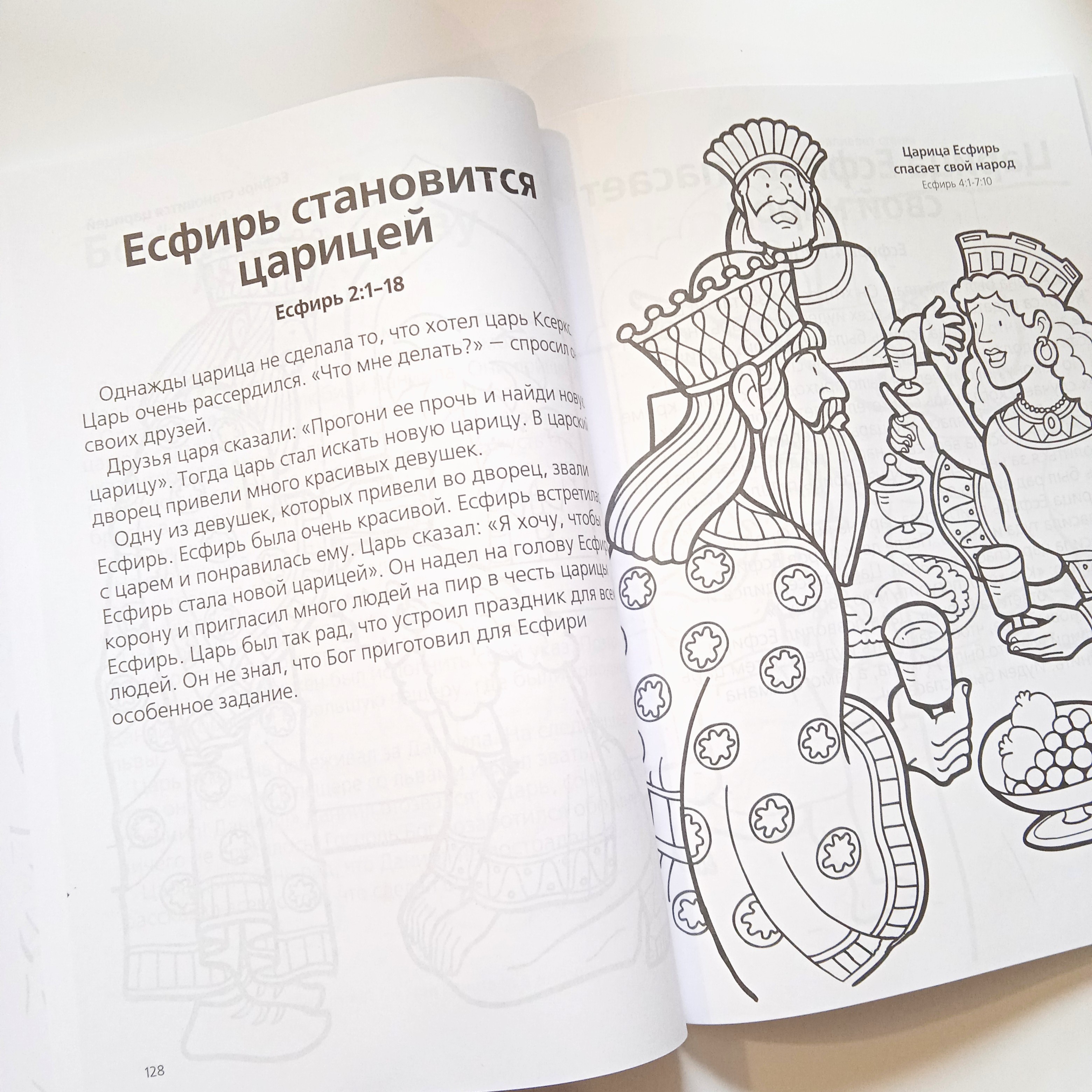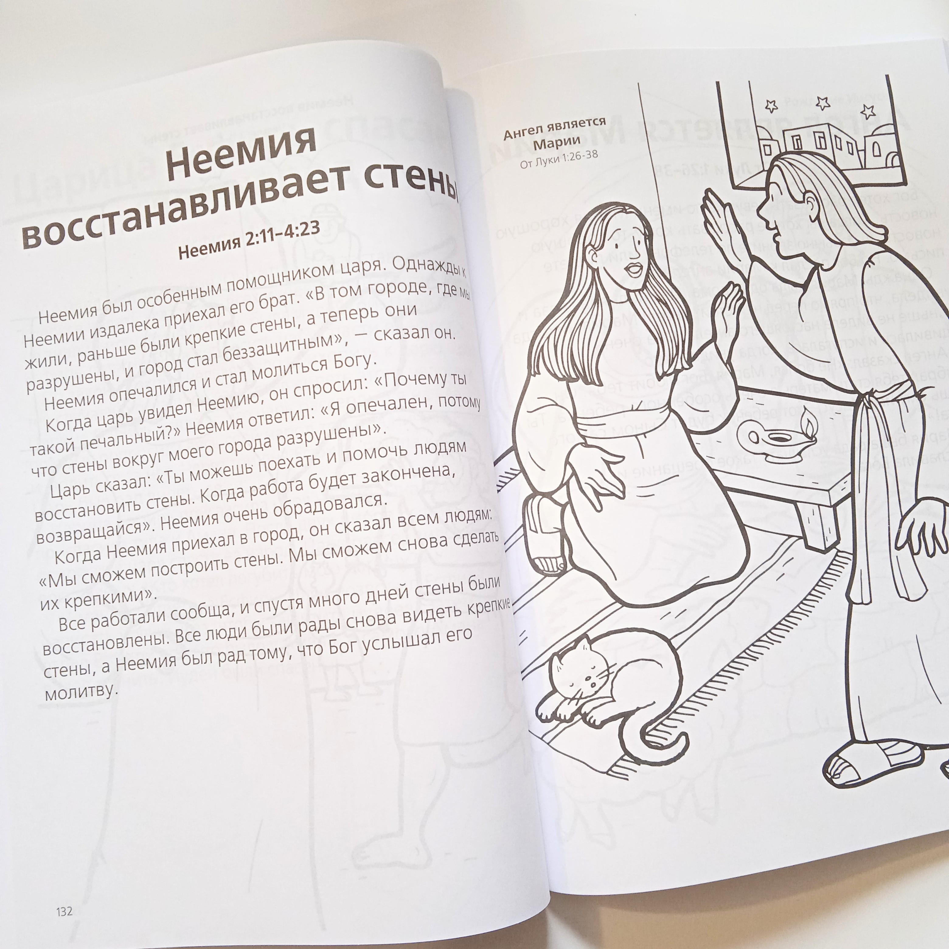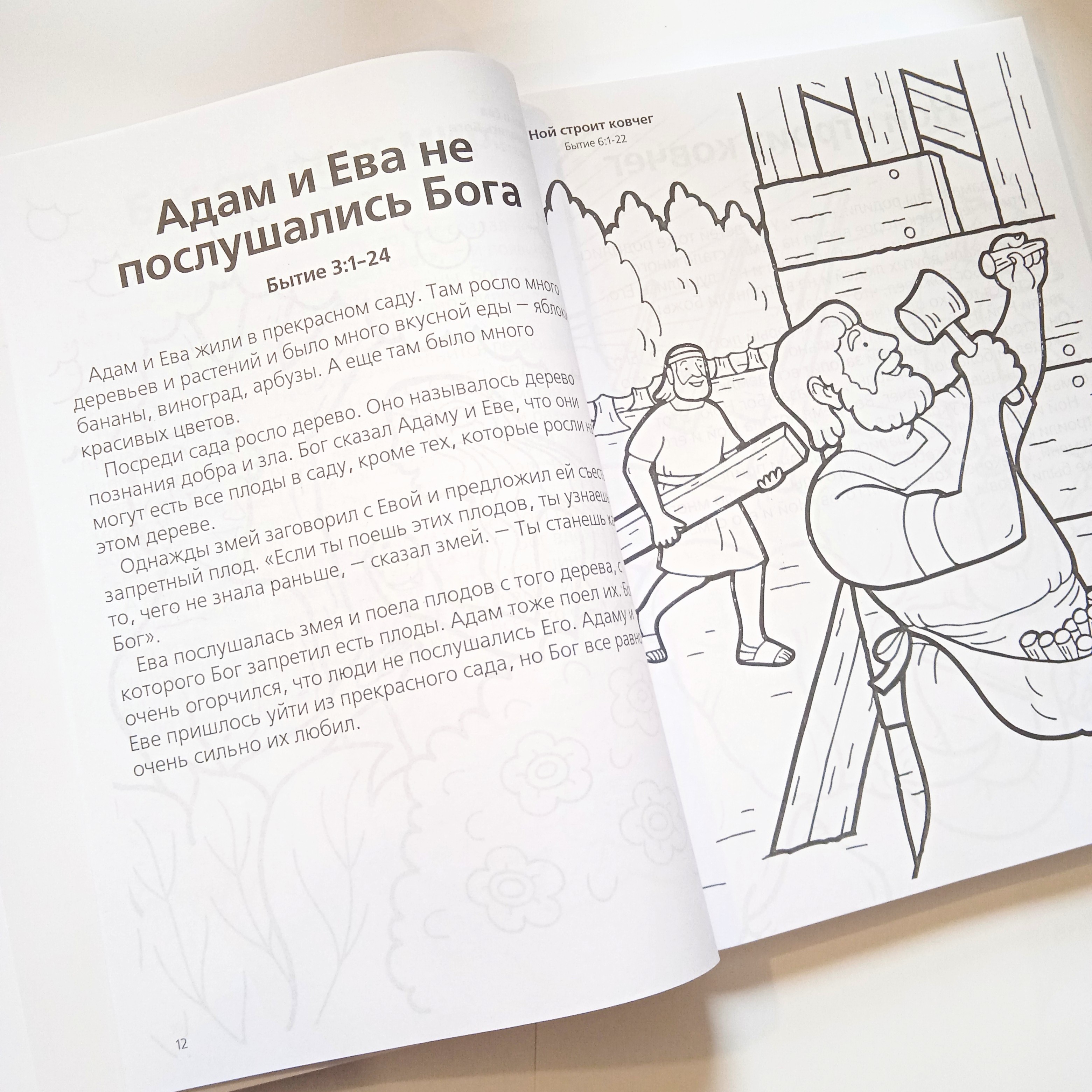 На обороте каждой раскраски напечатана небольшая библейская история.