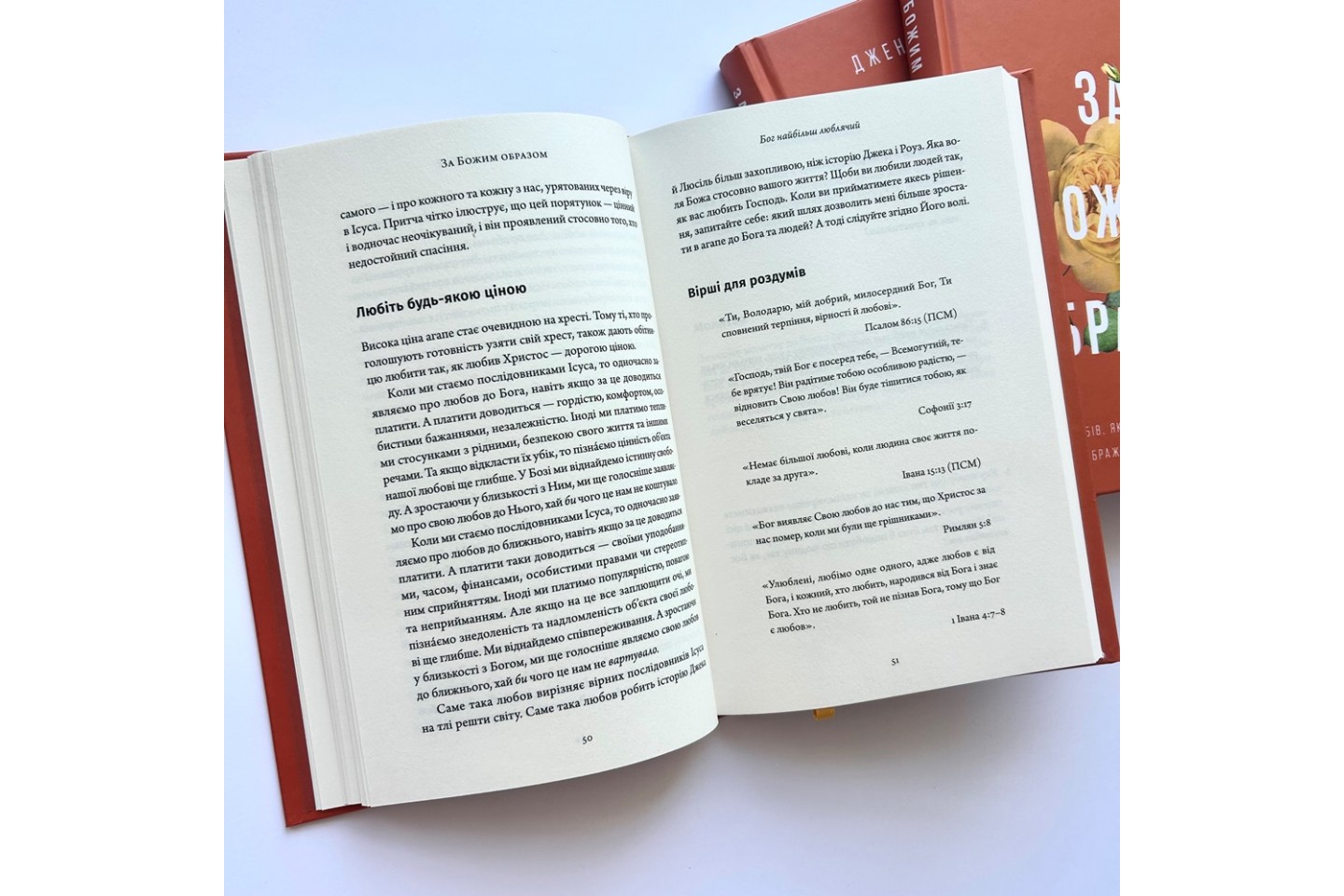 Джен Вілкін допомагає читачам побачити, якими мають бути люди, котрі прагнуть відображати у власному житті образ свого Творця. У книзі «За Божим образом» авторка досліджує 10 якостей Божого характеру, які християни покликані наслідувати: бути святими, люблячими, справедливими, добрими, милосердними, благодатними, вірними, терплячими, правдивими та мудрими. Ця книга закликає читачів пізнати мету свого життя і стати тими людьми, якими їх задумав Бог.