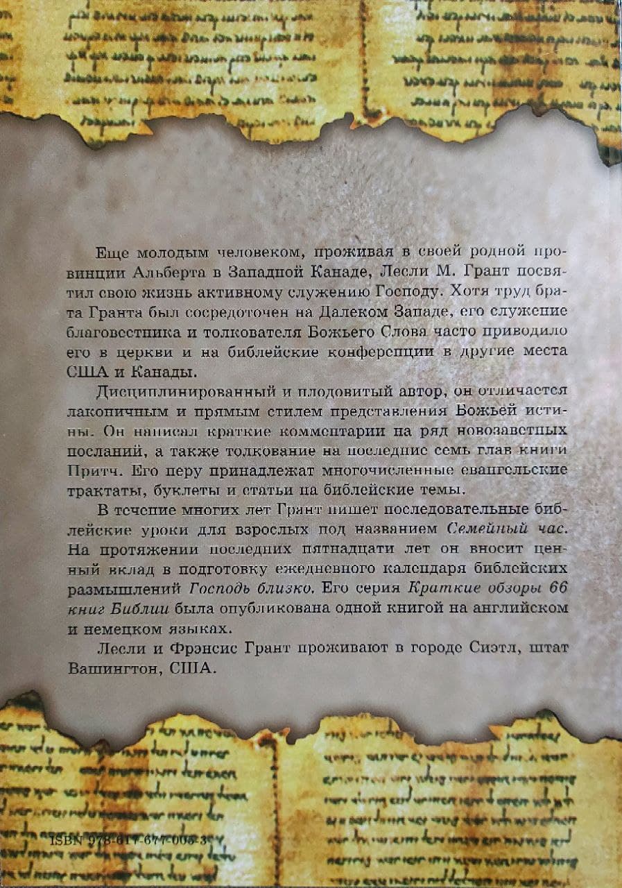 Эти комментарии Лесли М. Гранта станут для Вас несомненной помощью в понимании фундаментальной области Божьей истины. Изучая Послания к Ефесянам, к Филиппийцам и к Колоссянам тщательно, с Библией в руках, стих за стихом, Вы получите максимум пользы от комментариев Лесли М. Гранта.