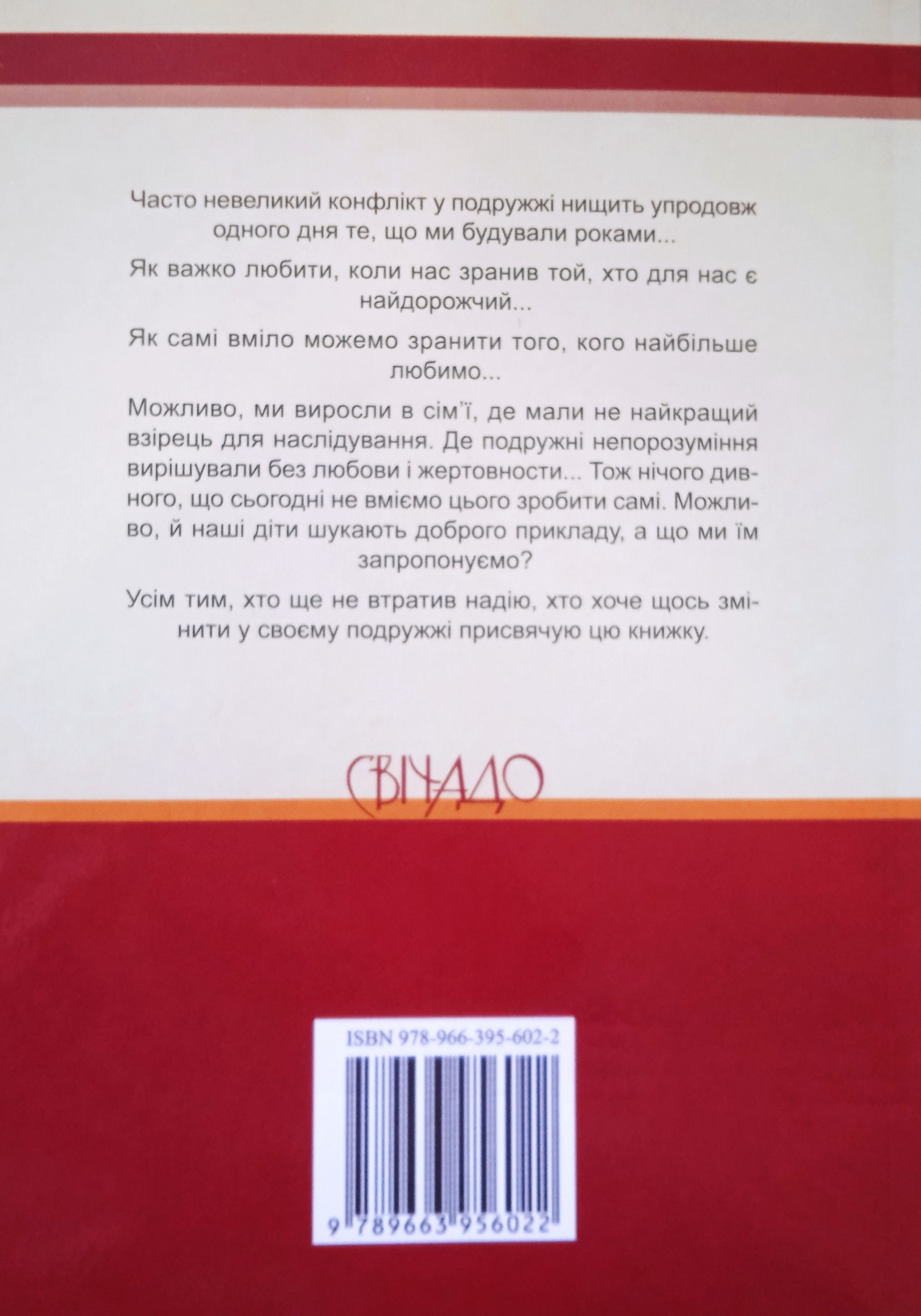 Як важко любити, коли нас зранив той, хто для нас є найдорожчий... Як самі вміло можемо зранити того, кого найбільше любимо... Можливо, ми виросли в сімї, де мали не найкращий взірець для наслідування. Де подружні непорозуміння вирішували без любові і жертовности ... Тож нічого дивного, що сьогодні не вміємо цього зробити самі. Можливо, й наші діти шукають прикладу, а що ми їм запропонуємо? Усім тим, хто ще не втратив надію, хто хоче щось змінити у своєму подружжі присвячую цю книгу.