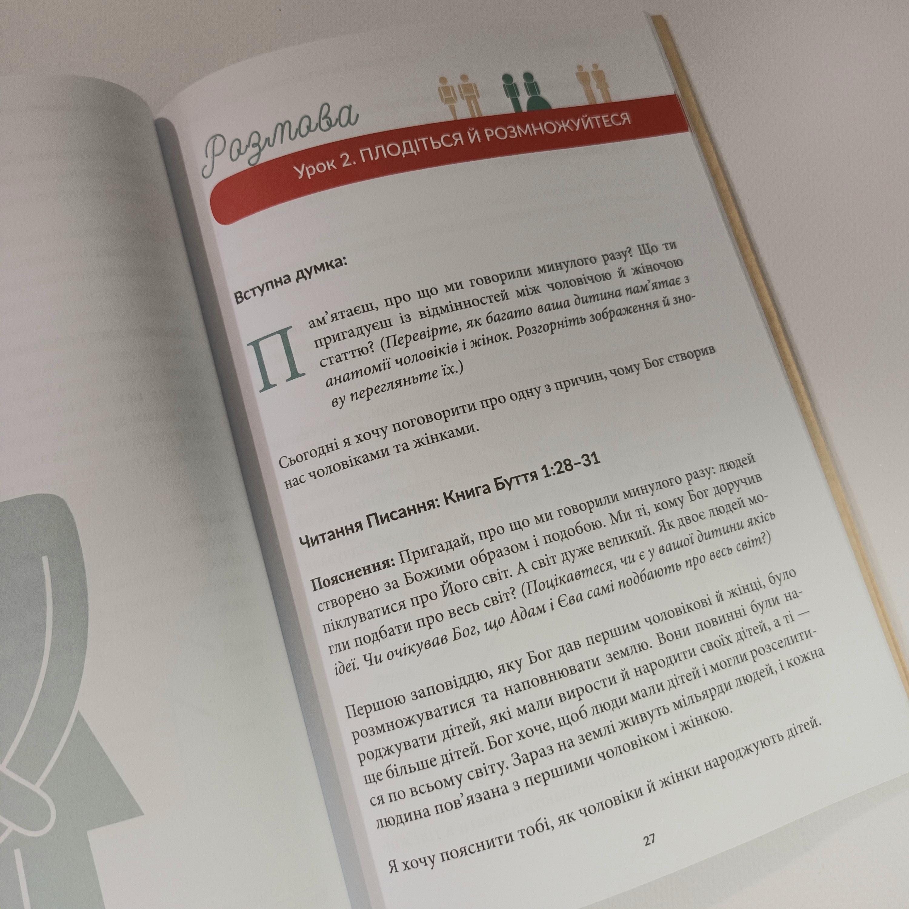 Коли розмова заходить про секс, батьки-християни часто не знають, що і коли говорити на цю тему. «Розмова» — це посібник із 7 уроків, які ґрунтуються на знаннях анатомії та Святому Письмі й допомагають батькам осмислено розмовляти з дітьми віком від 6 до 10 років про сексуальність. Книжка розкриває дітям молодшого віку фундаментальні істини про сексуальність на доступному для їхнього розуміння рівні.