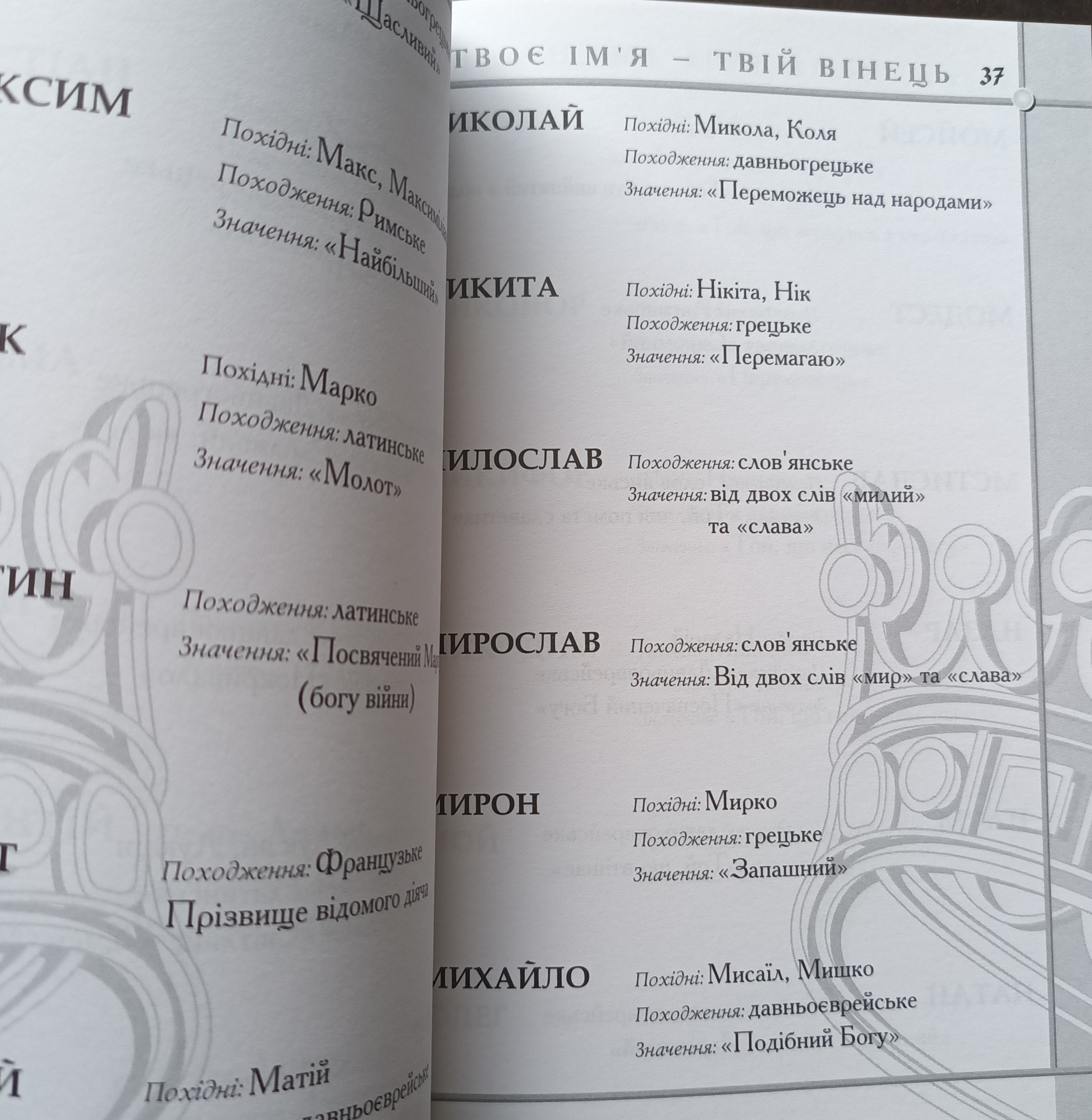 Близько 700 імен, їх походження та значення.