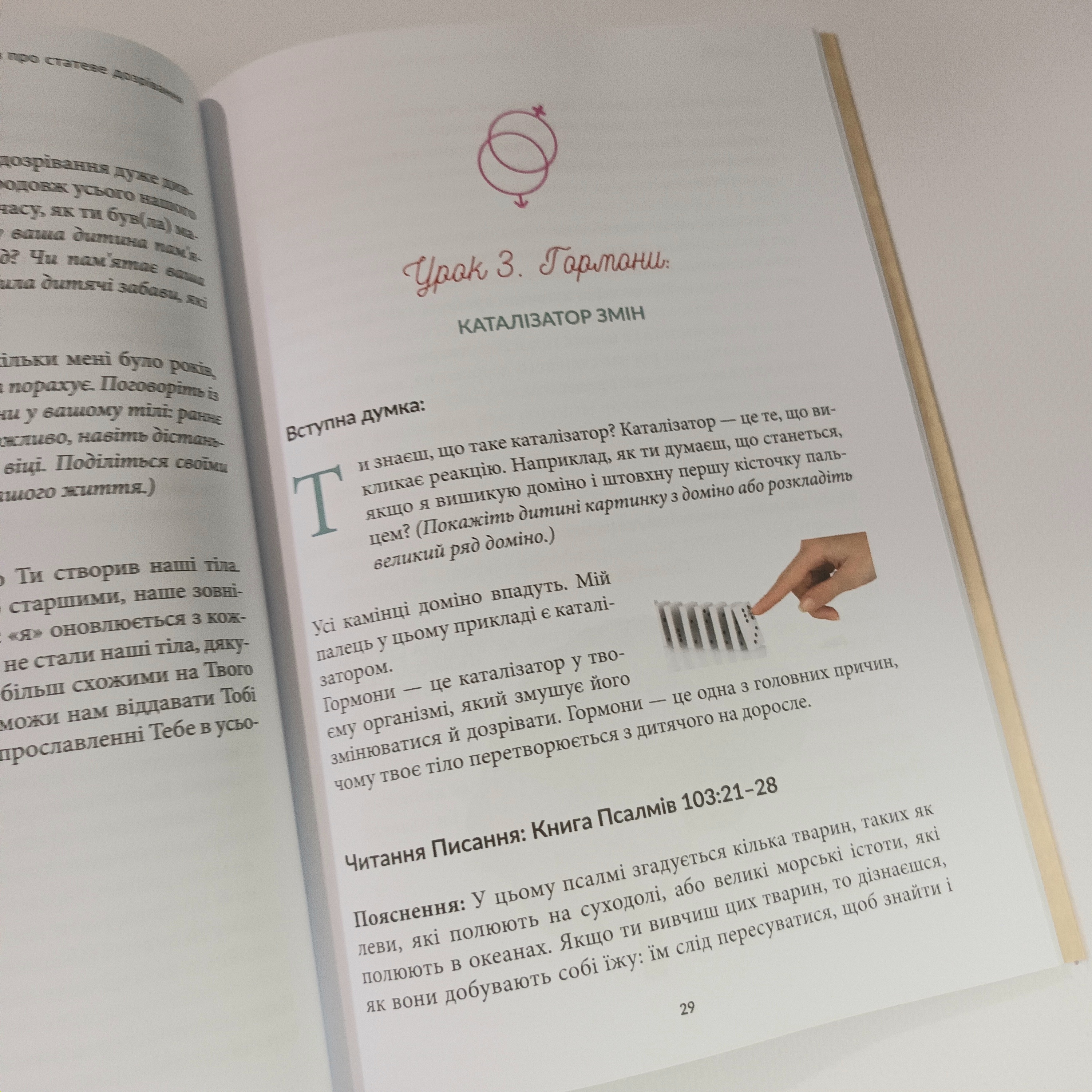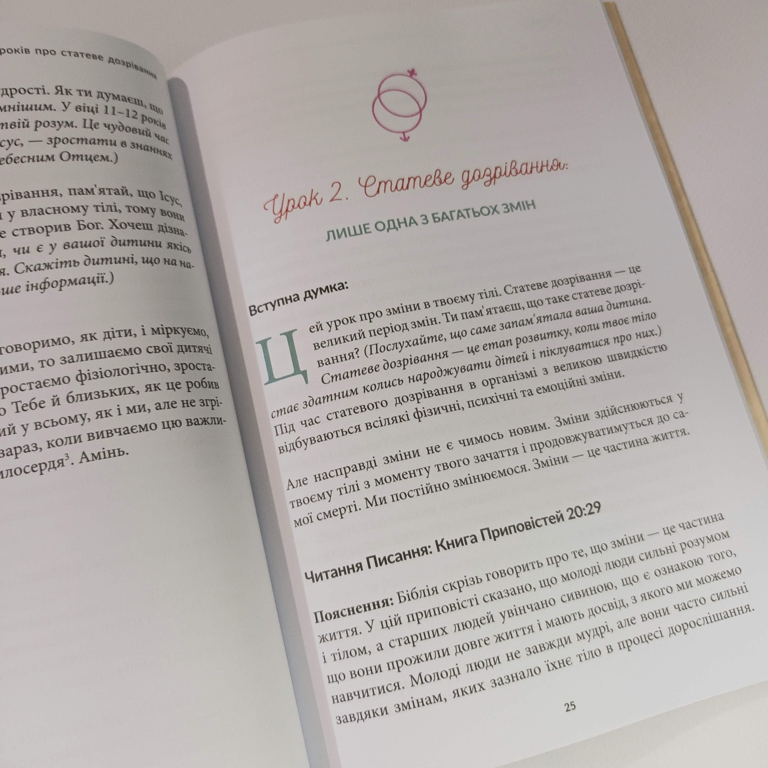 Прищі. Лобкове волосся. Груди. Пискляві голоси. Менструації. Нічні виділення. Безсумнівно, статеве дозрівання може здаватися незручним періодом у житті дитини. Але при правильному підході дітей можна навчити сприймати цей час як благословення. «Зміни» — це посібник із 7 уроків, який ґрунтується на наукових знаннях та Святому Письмі і який допомагає батькам вести змістовну розмову з дітьми від 8 до 12 років доступною для них мовою про ментальні, емоційні та фізичні зміни під час статевого дозрівання.