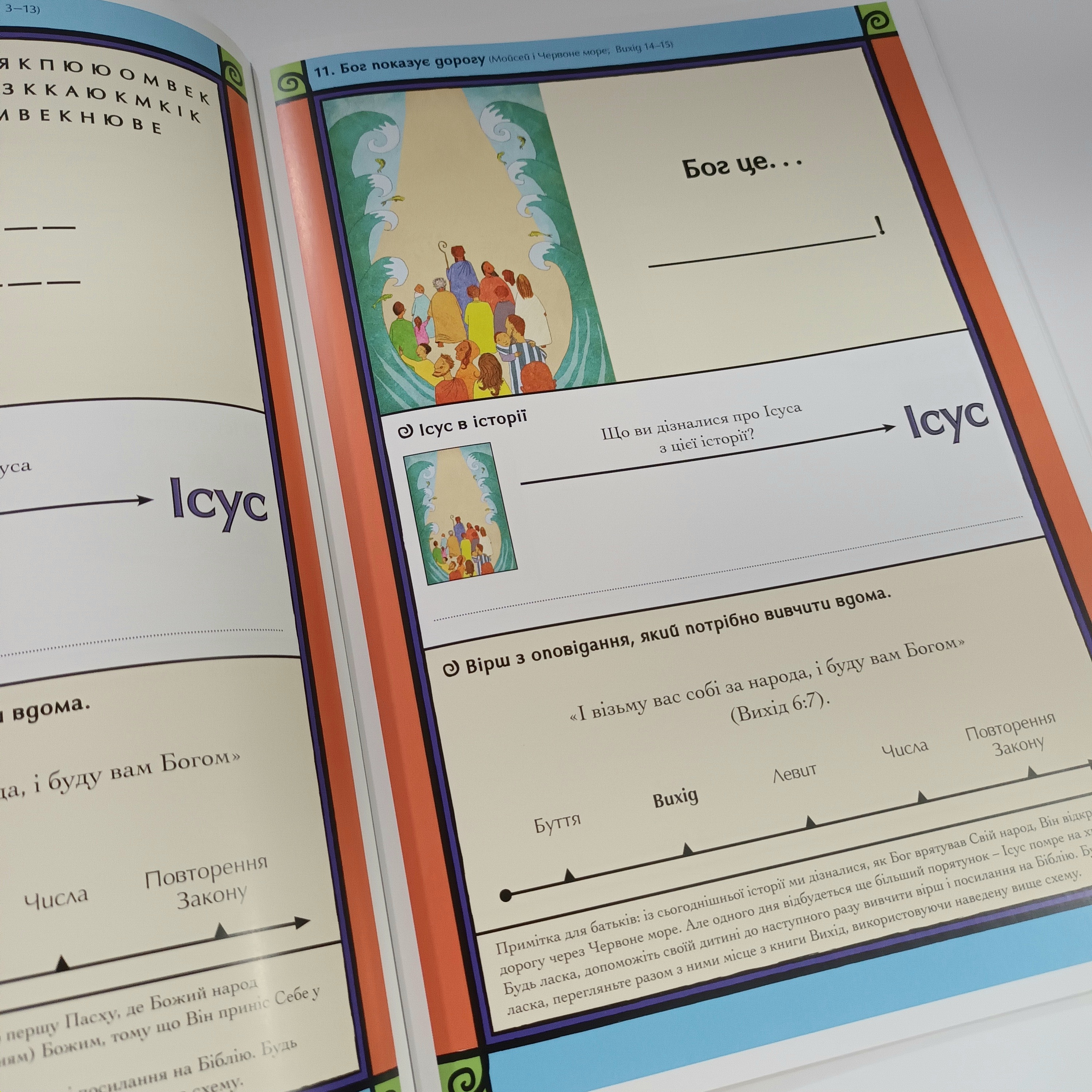 Цей зошит є частиною навчальної програми “Ісус на сторінках Біблії”, що орієнтована на дітей віком 4-7 років. У робочому зошиті діти зможуть виконувати інтерактивні завдання на основі пройденого матеріалу з книги «Ісус на сторінках Біблії».