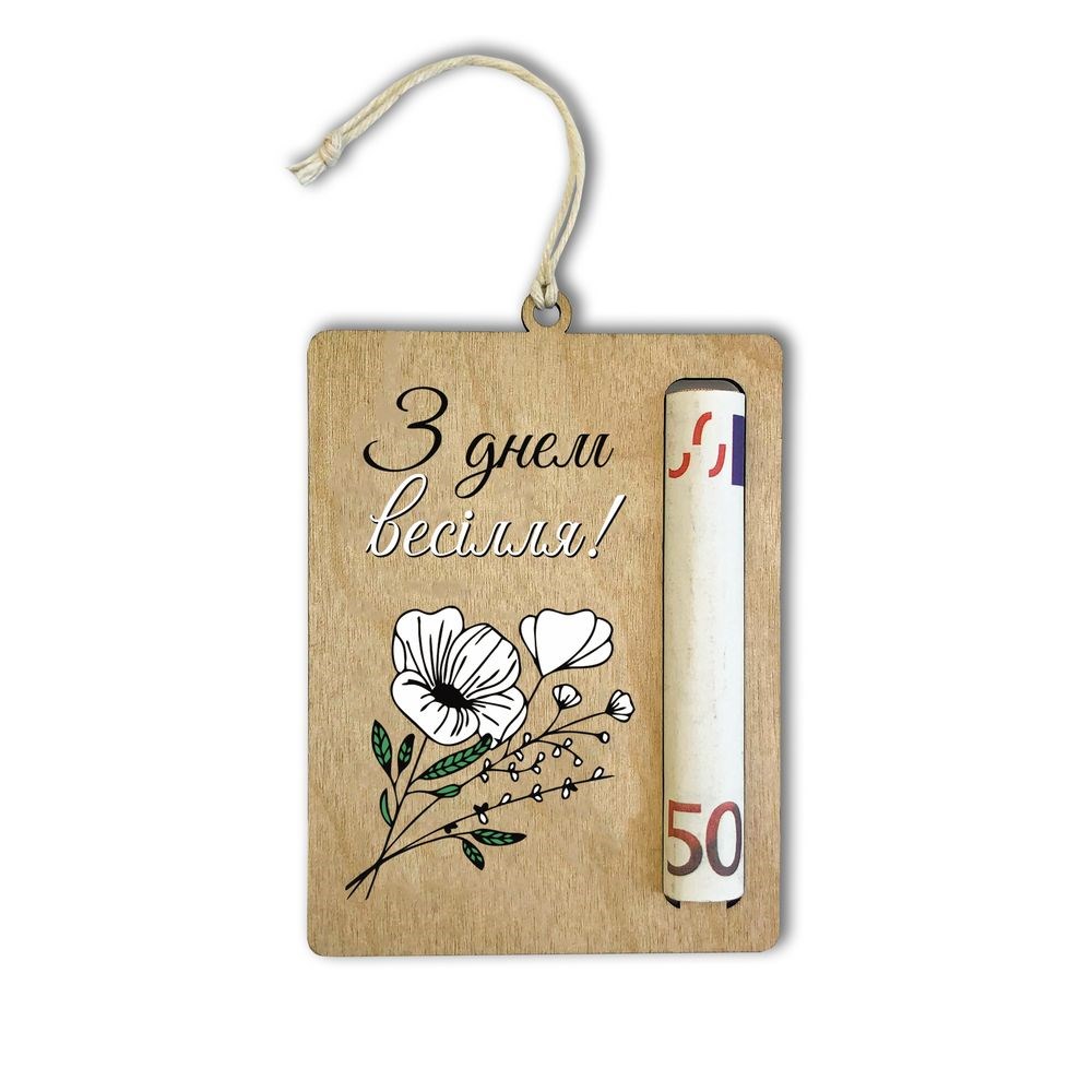 Оригінальна вітальна листівка-тримач для купюр стане чудовим доповненням до вашого подарунку. Матеріал - ХДФ, УФ друк. Розмір 9,5х7 см.