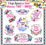 На листі розташовано вісім наклейок.