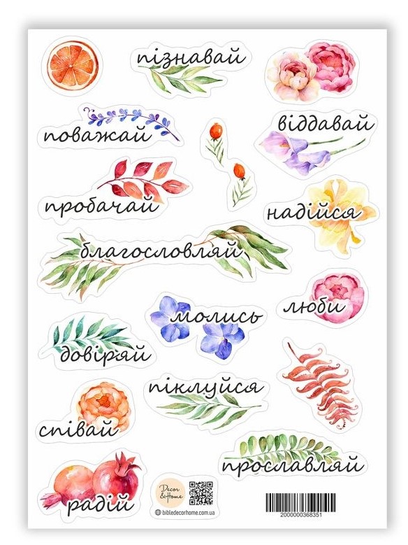 Набір наклейок розміром 14х10 см. прикрасить ваші замітки або  стане чудовим додатком до подарунку вашим близьким. Мають клейку міцну основу.