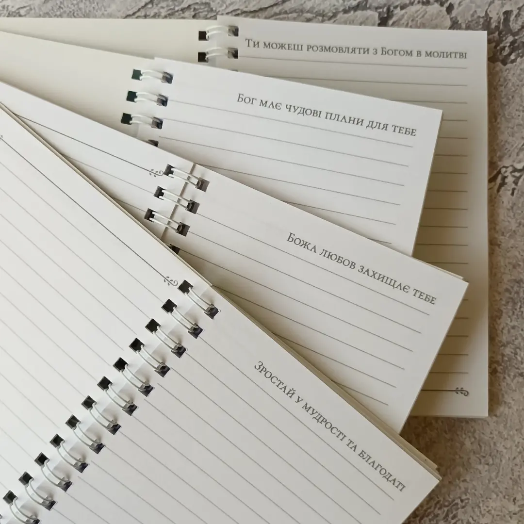 Блокнот на пружині, розмір формату А6, ламінована обкладинка, глянцева. Кількість сторінок: 45 ст. Паперовий блок в лінійку