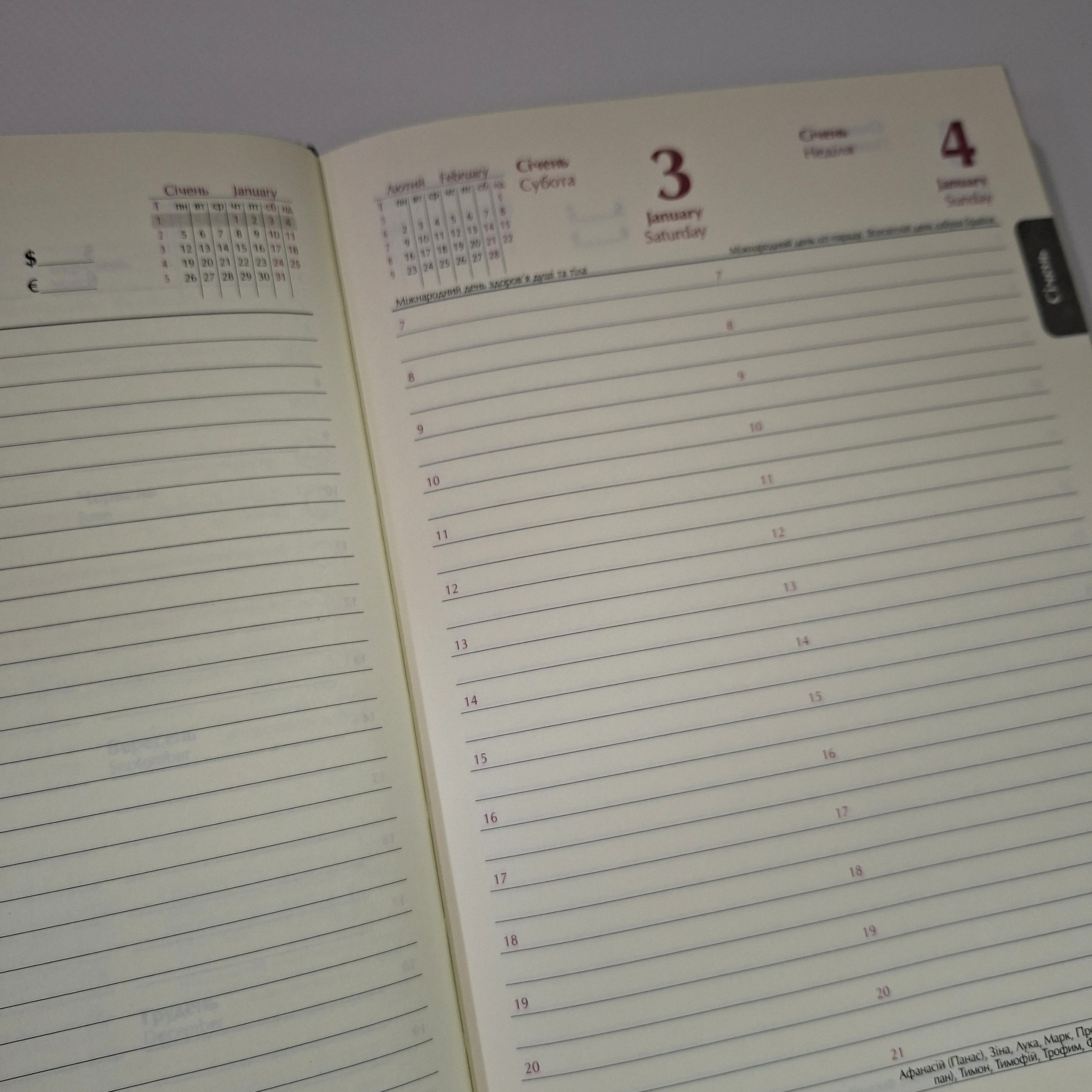 Діловий щоденник з біблійним текстом: "Дякуйте Господу, добрий бо Він, бо навіки Його милосердя!".