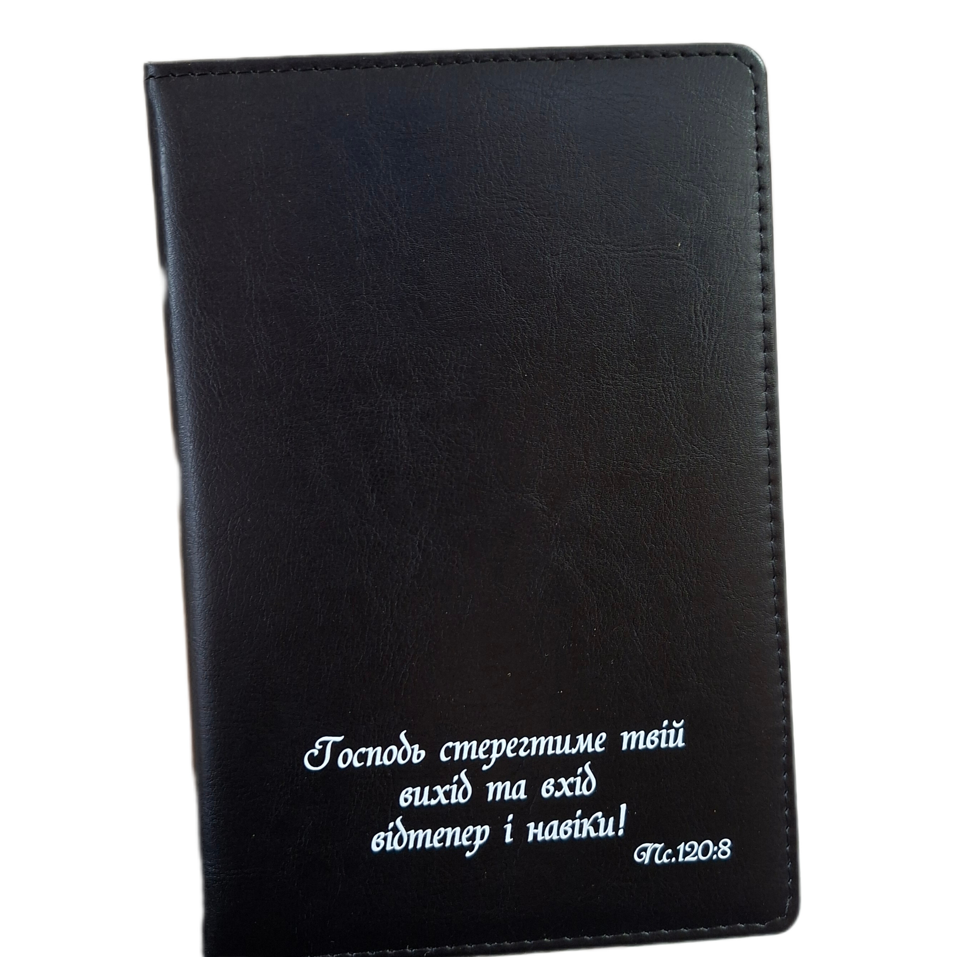 Записник з біблійним текстом: "Господь стерегтиме твій вихід та вхід відтепер і навіки!".