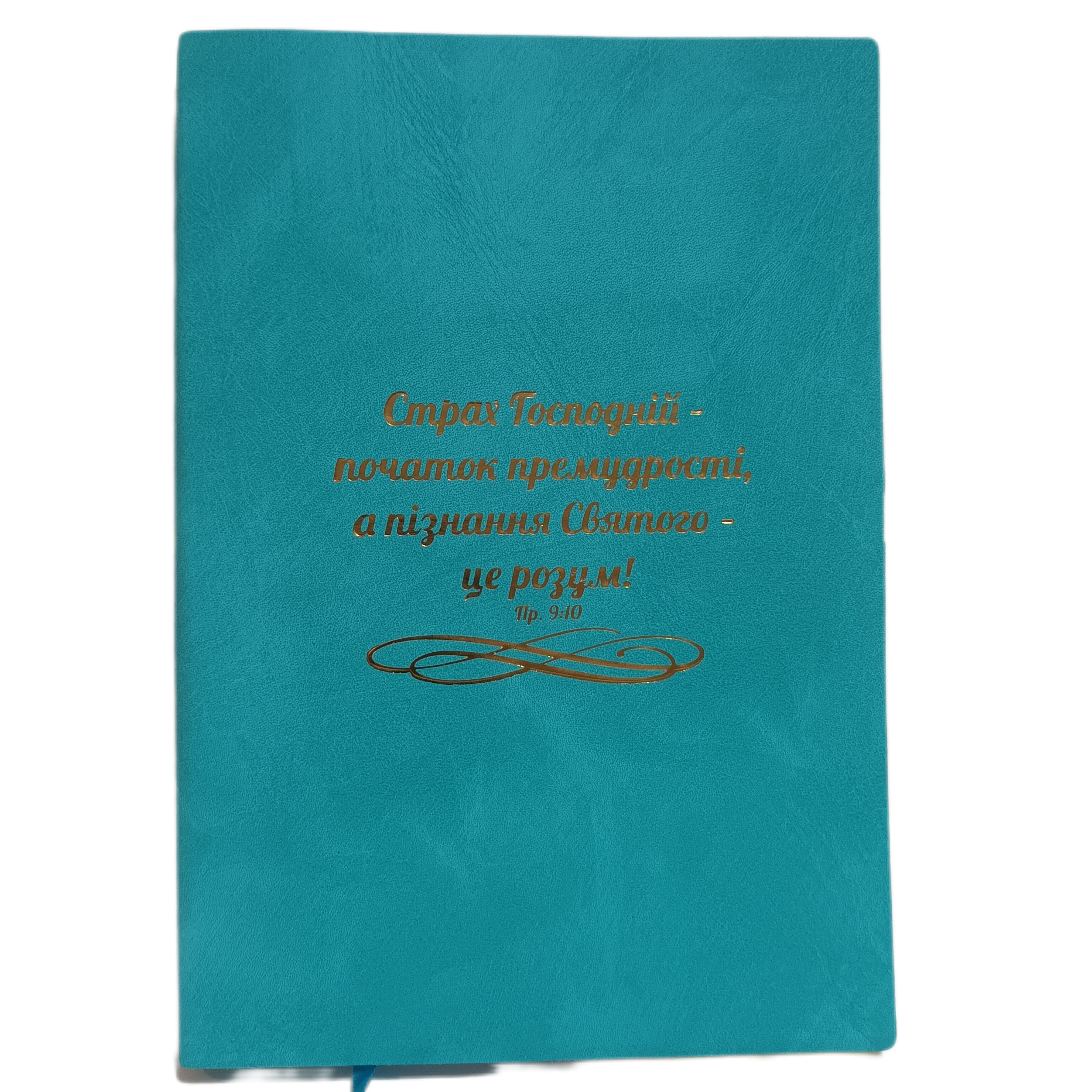 Записник з написом на обкладинці "Страх Господній - початок премудрості, а пізнання Святого - це розум".