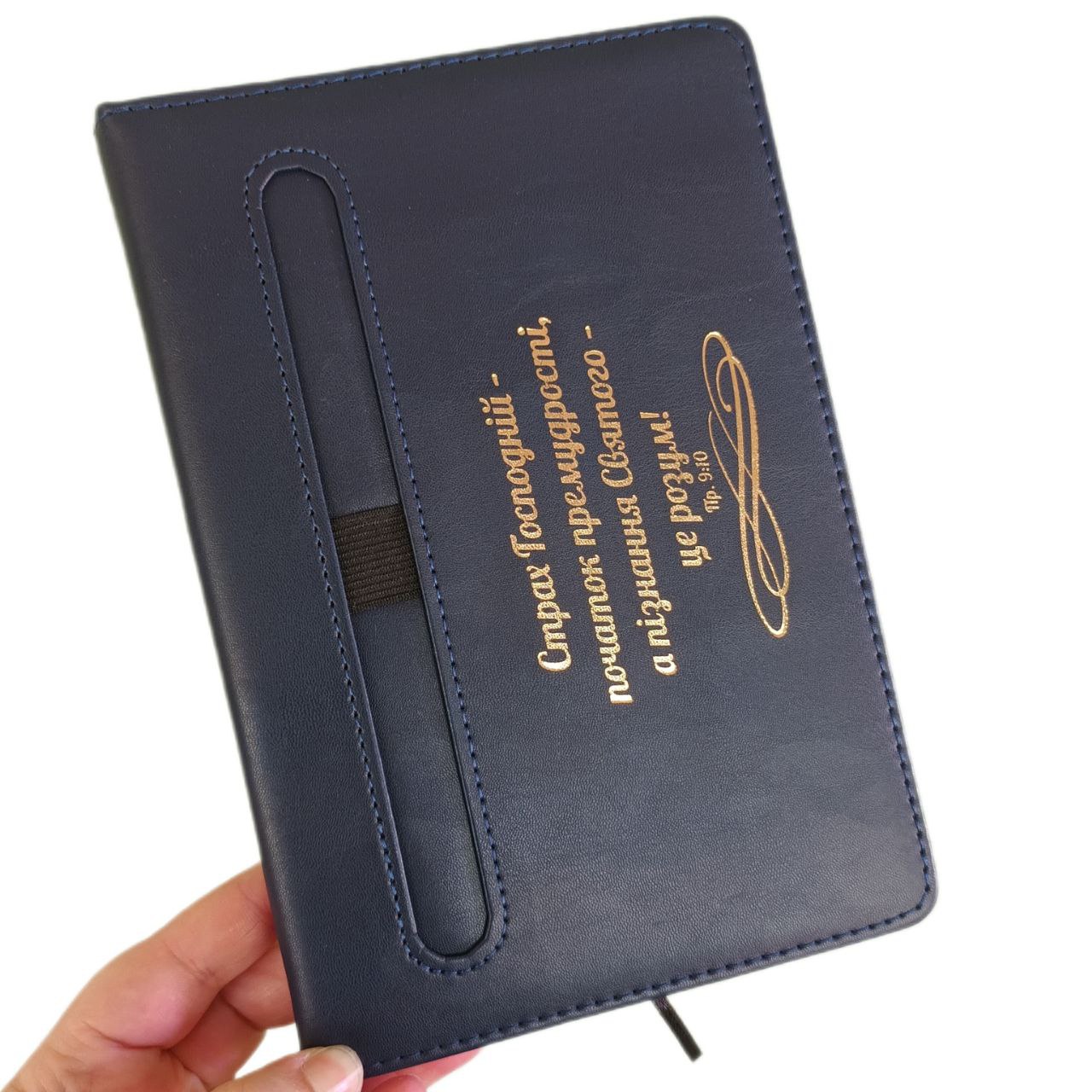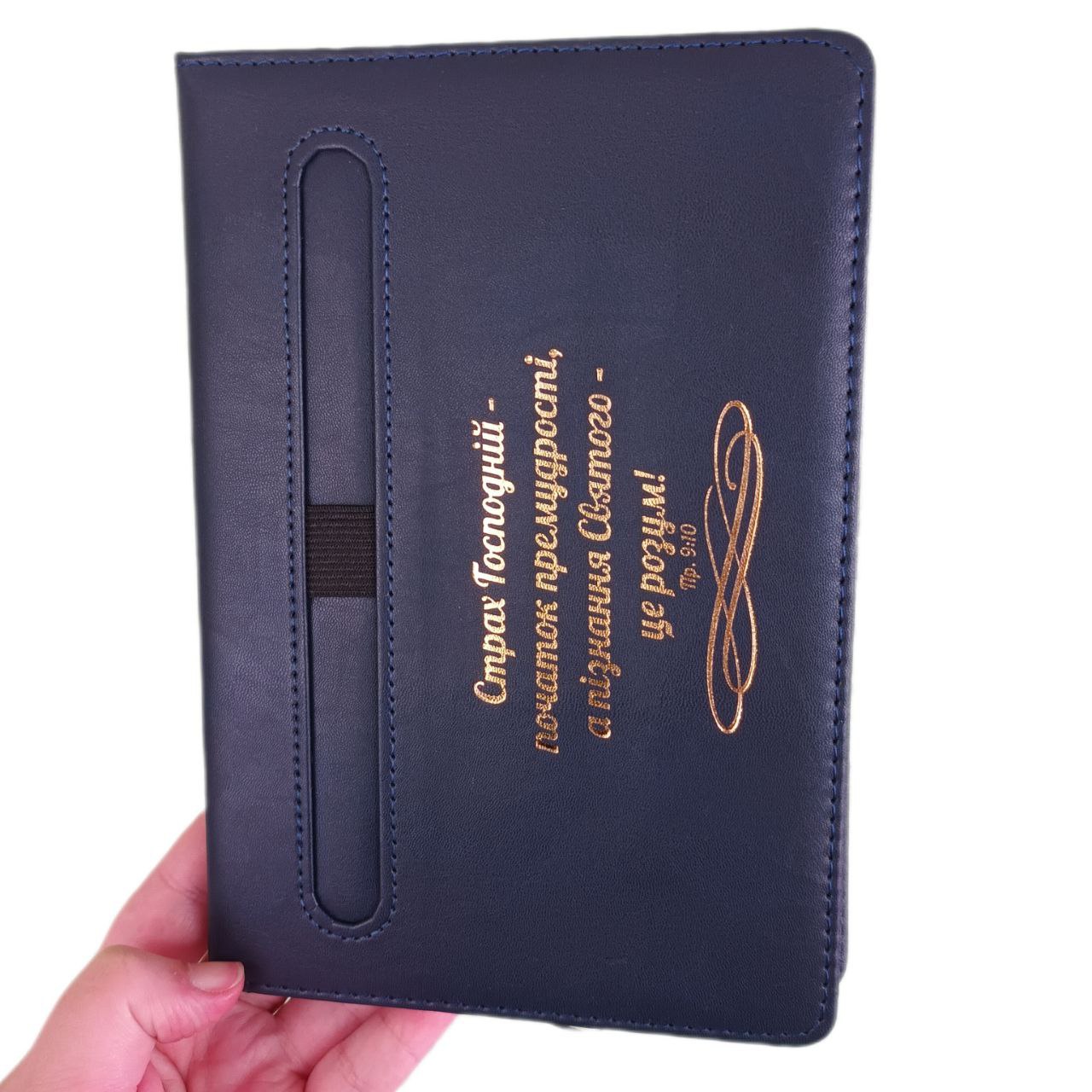 Обкладинка тверда, замінник шкіри. Є резинка для фіксації кулькової ручки.