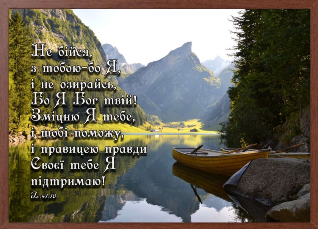 НЕ БІЙСЯ, З ТОБОЮ-БО Я, І НЕ ОЗИРАЙСЯ. БО Я БОГ ТВІЙ! ЗМІЦНЮ Я ТЕБЕ, І ТОБІ ПОМОЖУ, І ПРАВИЦЕЮ ПРАВДИ СВОЄЇ ТЕБЕ Я ПІДТРИМАЮ!