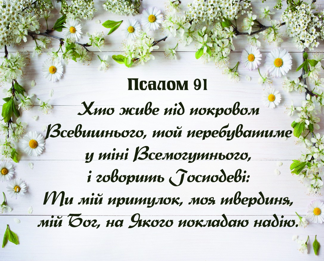 Product Summary Маленька листівка-карточка. Загальний розмір 90х70мм. Текст: "Псалом 91. Хто живе під покровом Всевишнього, той перебуватиме в тіні Всемогутнього...". Українською мовою. Зворотня сторона: "Псалом 91". Папір 350, крейдований, ламінація