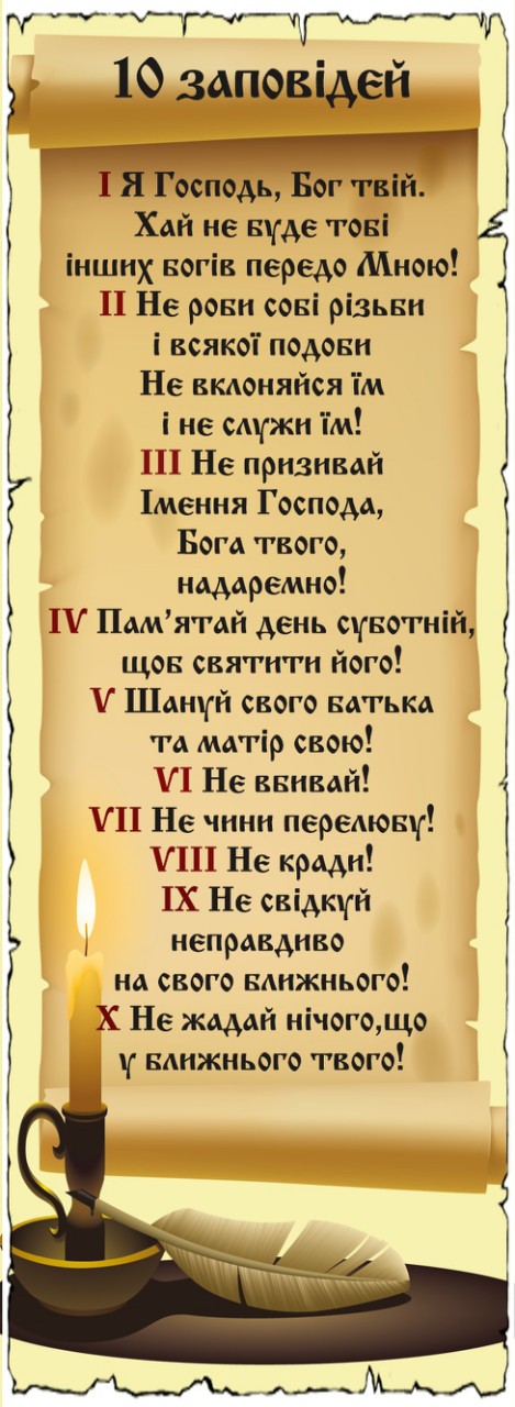 Закладка картонна. Зворотня сторона без тексту, можна використовувати для нотаток. Загальний розмір 150х54 мм. Текст українською мовою. Біблійні вірші взяті з Біблії в перекладі І. Огієнка. Посилання на біблійний вірш: Десять заповідей.