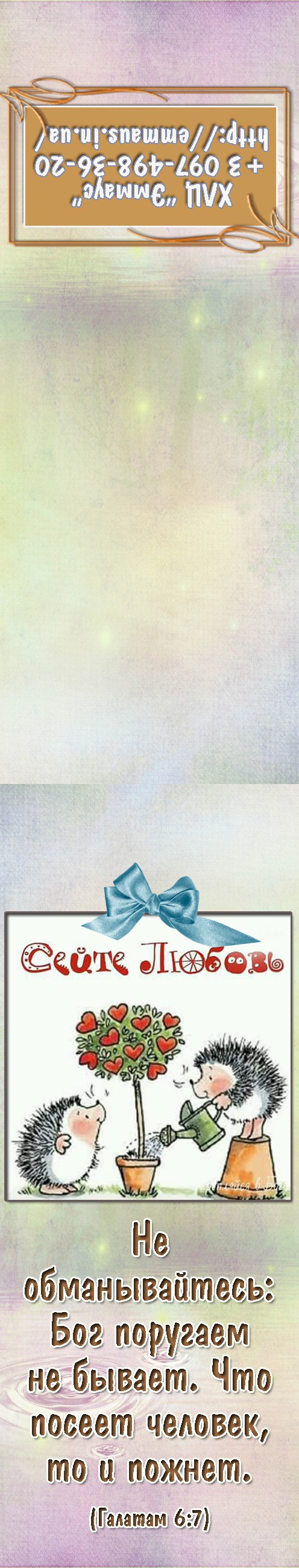 Product Summary Картонна закладка на магніті. Розмір в складеному вигляді 9х3 см. Текст російською мовою. Біблійні вірші в Синодальному перекладі. Внутрішня сторона теж має мудрі роздуми. Місце з Біблії: Галатам 6:7.