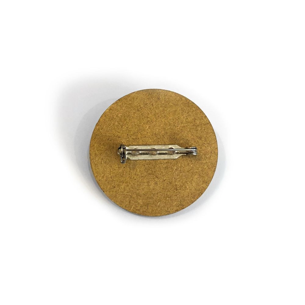 Значок дерев'яний кріпиться за допомогю булавки. Діаметр - 4 см.