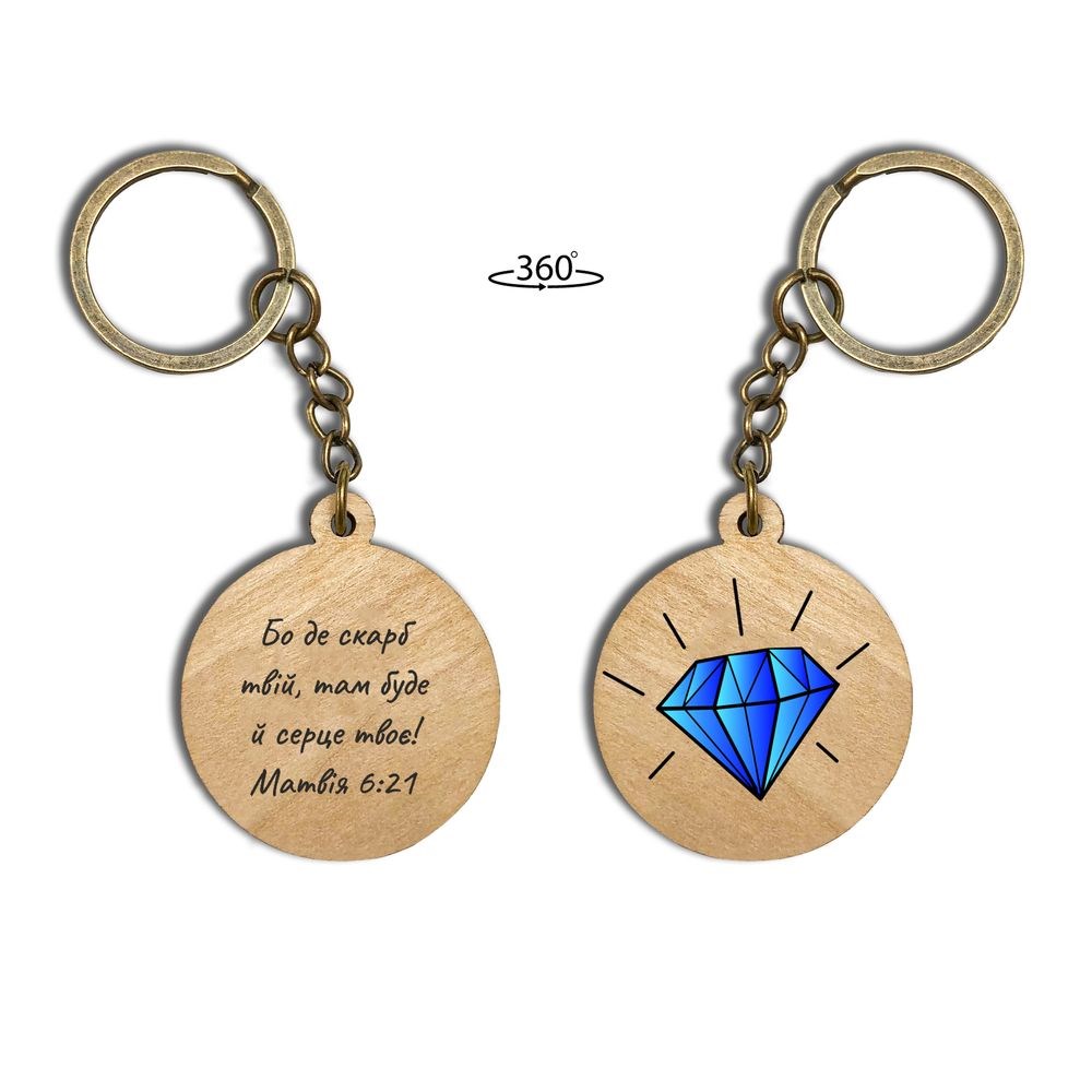 Дерев'яний брелок з міцним металевим тримачем стане вашим помічником у повсякденності. Зручно лягає в руку,  якісний друк. Діаметр - 3 см. Товщина - 3 мм.