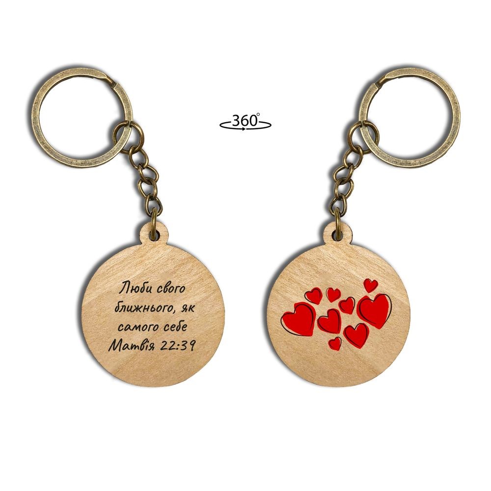 Дерев'яний брелок з міцним металевим тримачем стане вашим помічником у повсякденності. Зручно лягає в руку,  якісний друк. Діаметр - 3 см. Товщина - 3 мм.