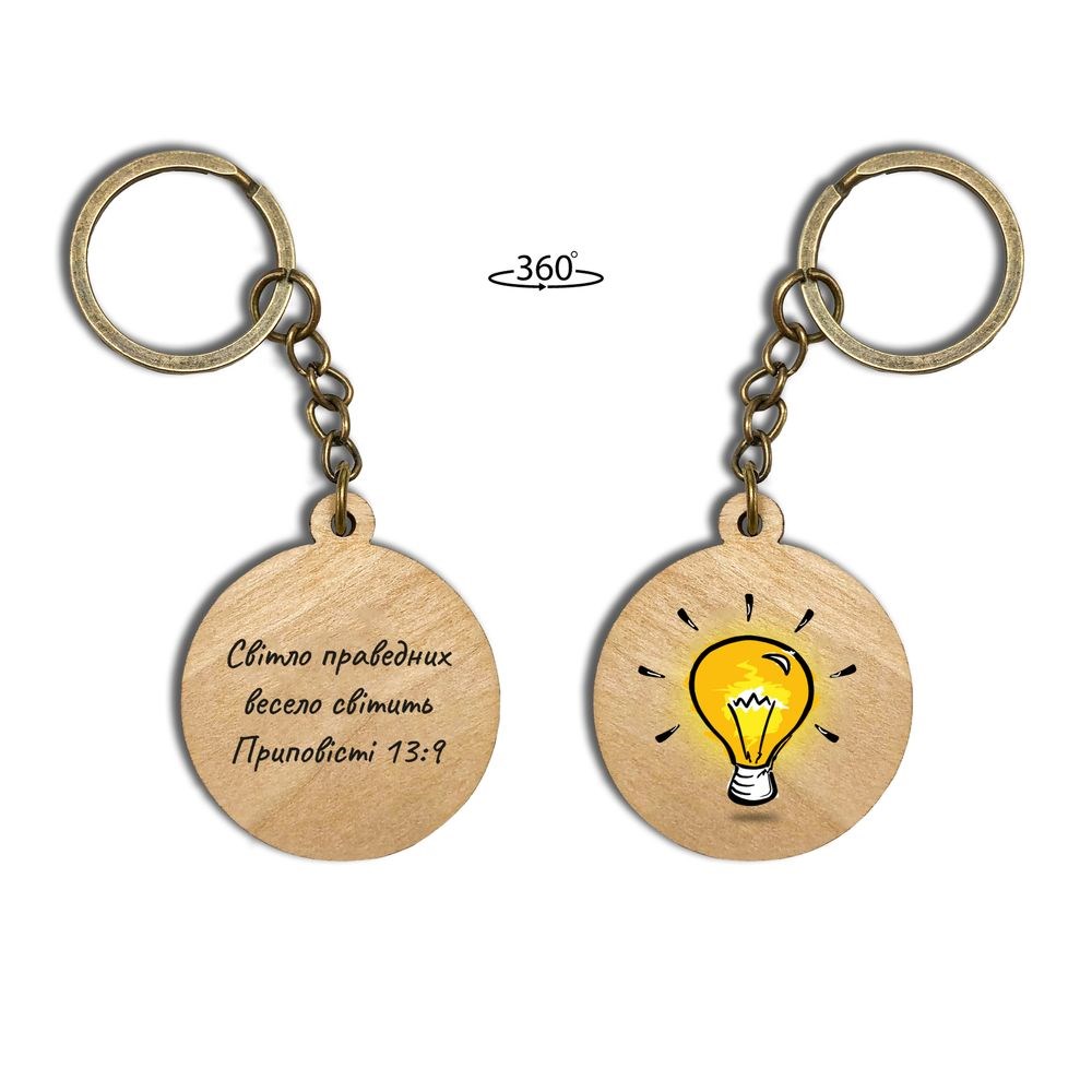 Дерев'яний брелок з міцним металевим тримачем стане вашим помічником у повсякденності. Зручно лягає в руку, якісний друк. Діаметр - 3 см. Товщина - 3 мм.