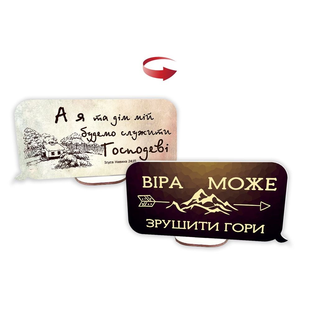 Декоративні дерев'яні таблички з мотивуючими написами та цитатами з Біблії - хороший подарунок та прикраса для дому. Матеріал - дерево, МДФ. Комплектуючі - табличка, підставка. Загальний розмір таблички - 20х10 см. Ширина підставки - 6,5 см.