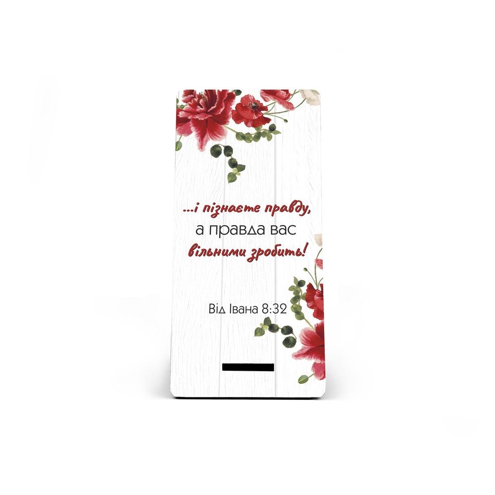Декоративна табличка з мотивуючими написами та цитатами з Біблії стане доречним подарунком або ж родзинкою Вашого інтер'єру. Просто відламайте нижню частину таблички та вставте її в спеціальний отвір зі зворотнього боку. Табличку можна поставити на будь-яку поверхню. Розмір – 7,5х15 см. Матеріал – ХДФ. УФ-друк.