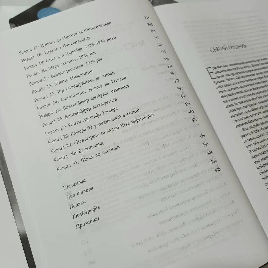 Ця книга - розповідь про життя знаменитого богослова, який визначив розвиток усієї християнської думки ХХ століття в післявоєнному світі, людини, що зблизька зазирнула у вічі найбільшому злу і одна з перших зрозуміла, яка страшна доля чекає світ після приходу до влади в Німеччині Адольфа Гітлера. В той час як вождь нацистів зваблював німецький народ, залякував континент і намагався знищити всіх євреїв Європи, невелика група дисидентів намагалася зруйнувати Третій Рейх ізсередини. Серед них був Дітріх Бонгьоффер.