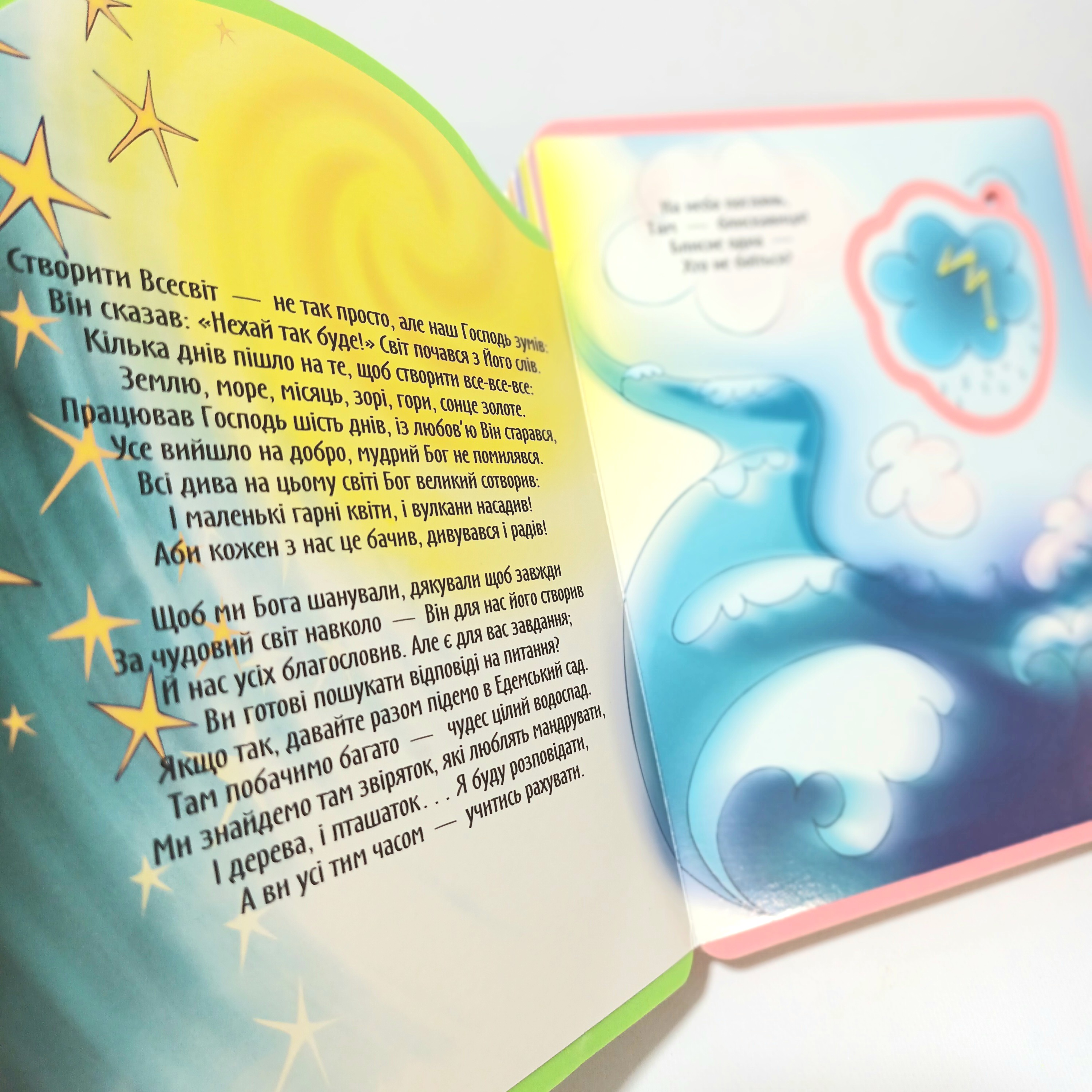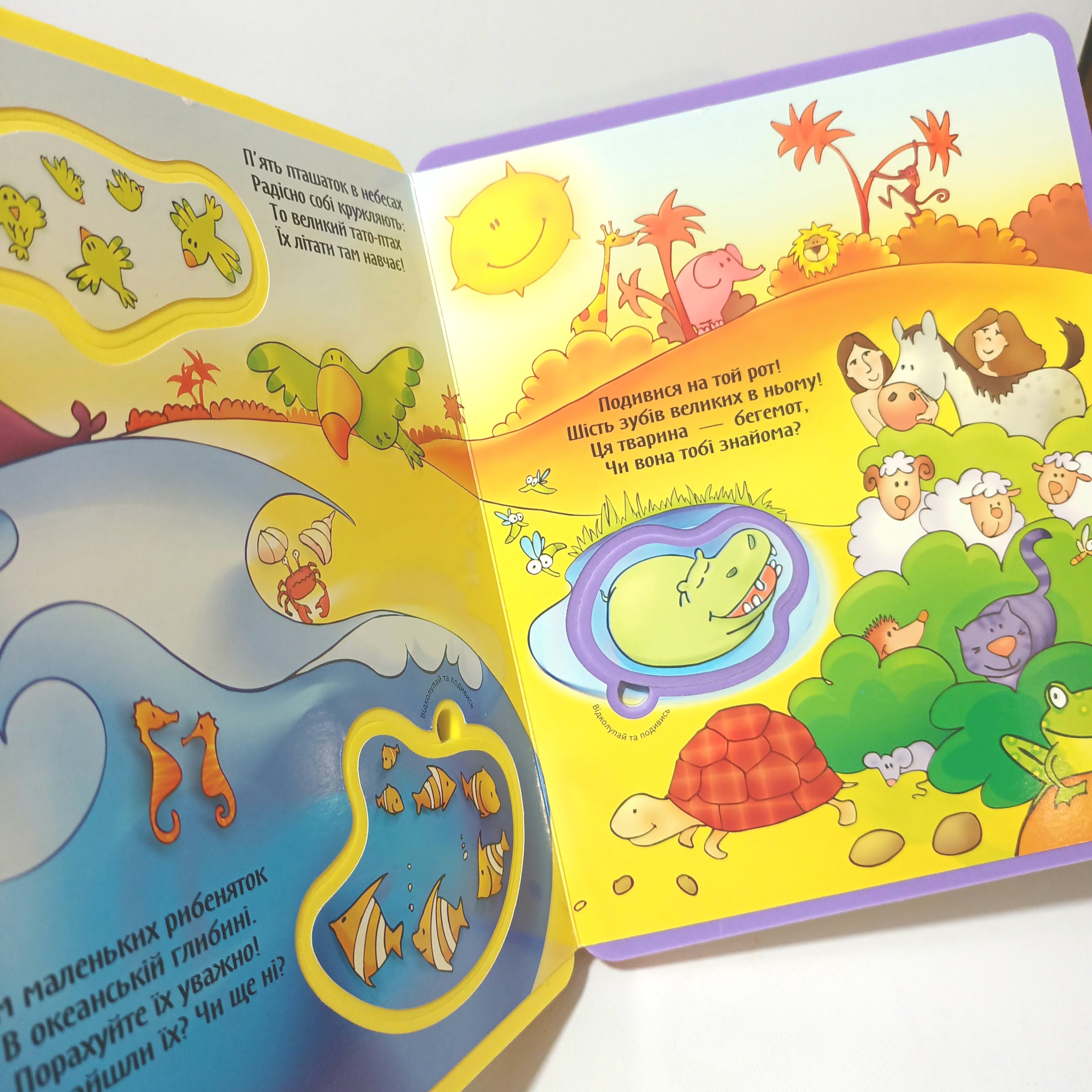 М’які сторінки допоможуть дітям досліджувати все самостійно, а кумедні віршики спонукатимуть малят доторкатися до сторінок пальчиками та виймати фігурні деталі. Сонце, зірки, планети, пташки, риби та різноманітні тварини у поєднанні з цифрами допоможуть дітям навчитись рахувати та поповнять словниковий запас.
