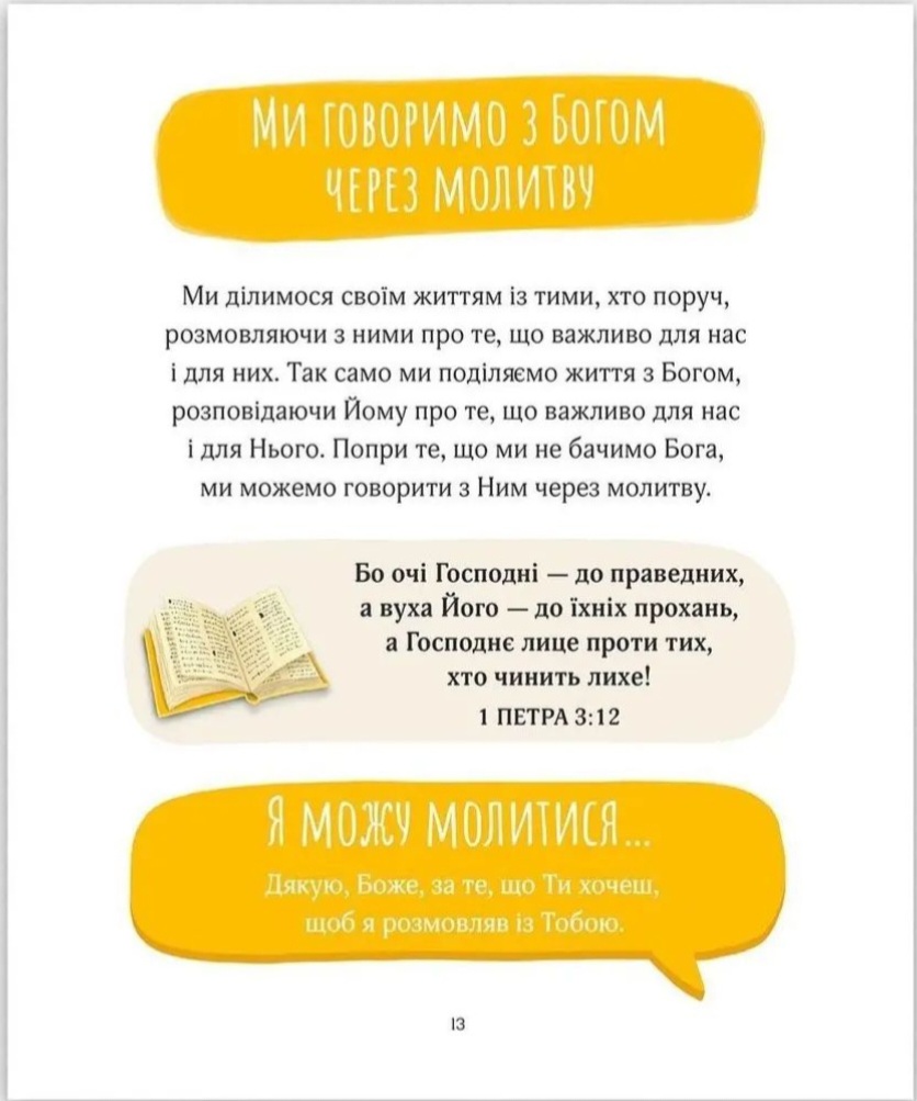 Ненсі Гатрі у цьому біблійному посібнику доступною мовою пояснює дітям, що таке молитва, як, чому і про що ми можемо молитися. До кожної теми наведено біблійні вірші і приклад молитви для дітей, на основі якої вони можуть самостійно молитися.