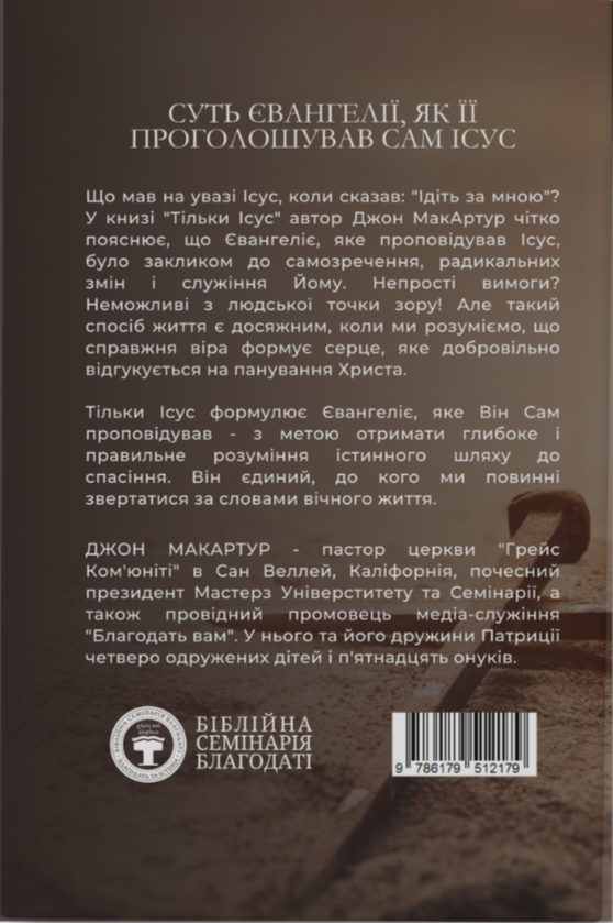 Що мав на увазі Ісус, коли сказав: “Ідіть за мною”? У книзі “Тільки Ісус” автор Джон МакАртур чітко пояснює, що Євангеліє, яке проповідував Ісус, було закликом до самозречення, радикальних змін і служіння Йому. Непрості вимоги? Неможливі з людської точки зору! Але такий спосіб життя є досяжним, коли ми розуміємо, що справжня віра формує серце, яке добровільно відгукується на панування Христа.