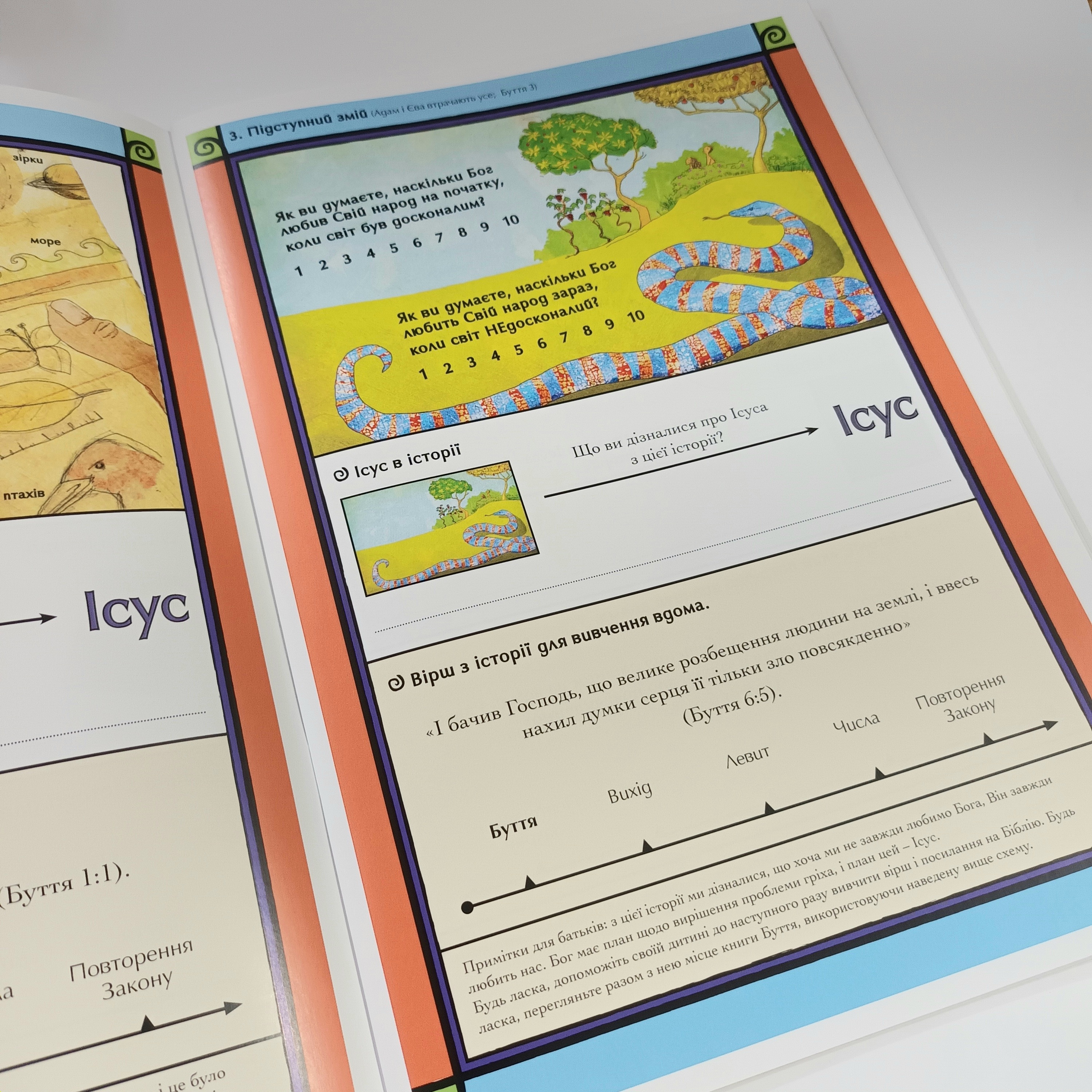 Цей зошит є частиною навчальної програми “Ісус на сторінках Біблії”, що орієнтована на дітей віком 4-7 років. У робочому зошиті діти зможуть виконувати інтерактивні завдання на основі пройденого матеріалу з книги «Ісус на сторінках Біблії».