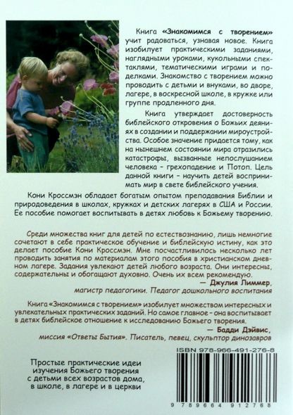 Кони Кроссмэн обладает богатым опытом преподавания Библии и природоведения в школах, кружках и детских лагерях в США и России. Её пособие помогает воспитывать в детях любовь к Божьему творению.