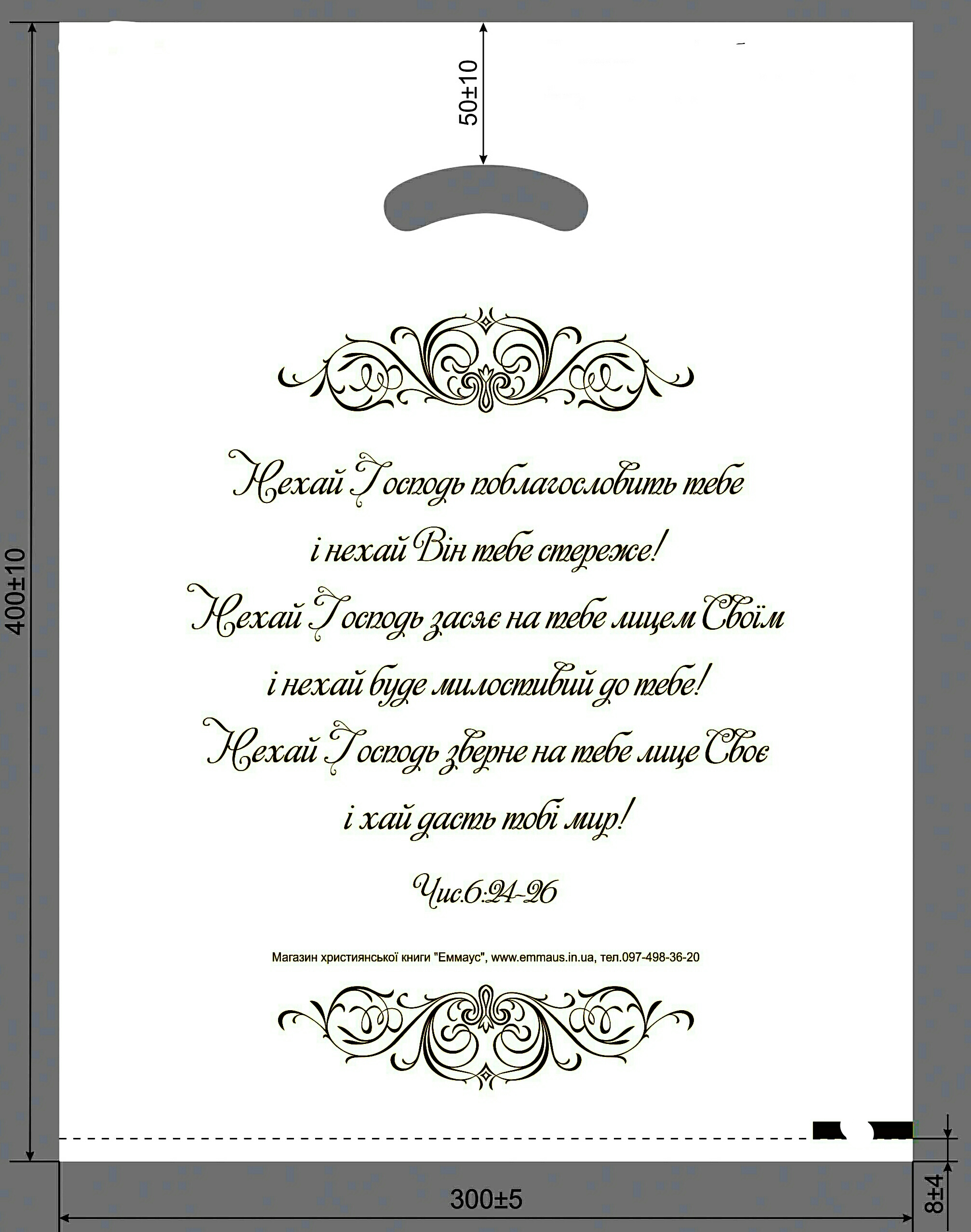 Текст нанесений чорним кольором: "Нехай Господь поблагословить тебе, і нехай Він тебе стереже Нехай Господь засяє на тебе лицем Своїм, і нехай буде милостивий до тебе!Нехай Господь зверне на тебе лице Своє, і хай дасть тобі мир!"