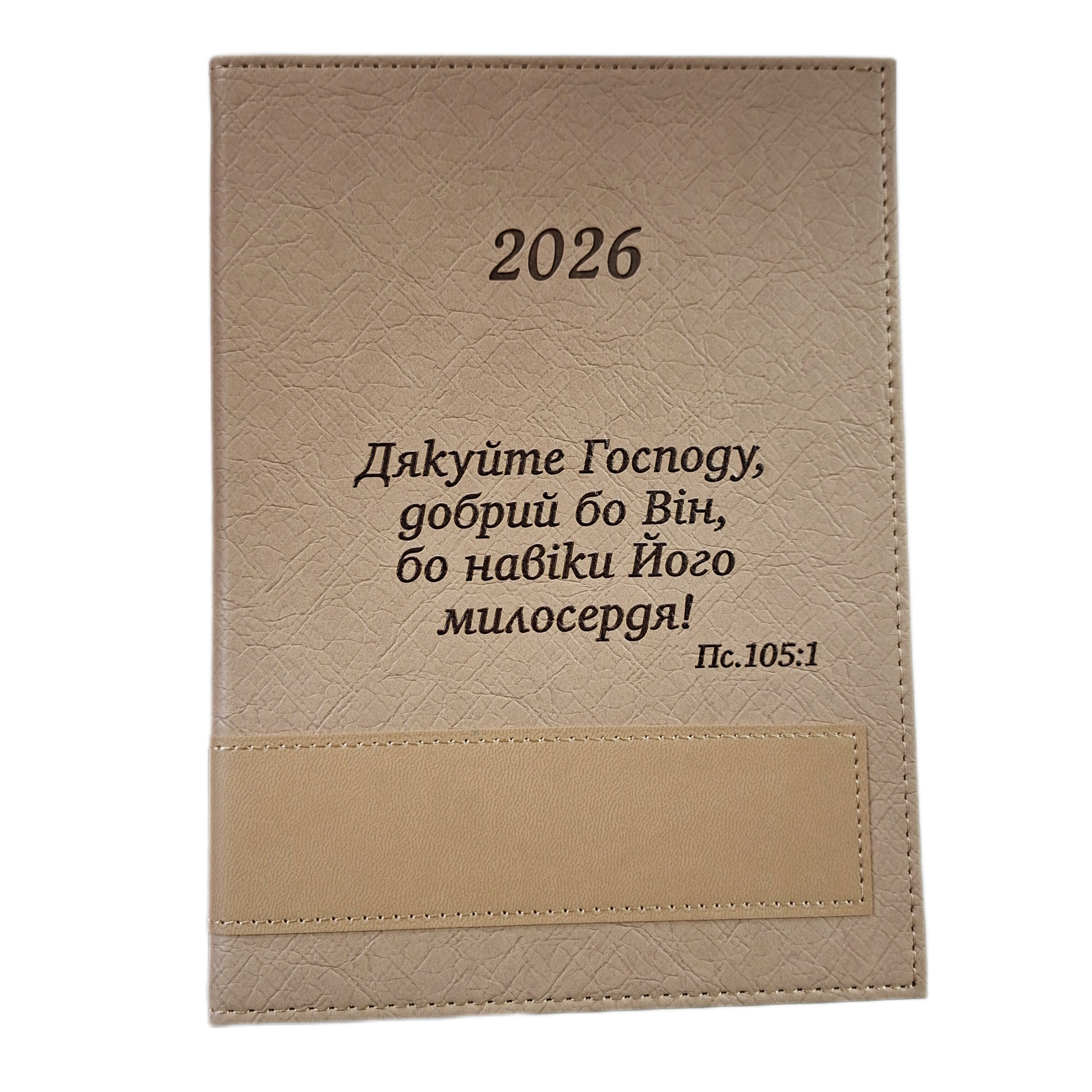Діловий щоденник з біблійним текстом: "Дякуйте Господу, добрий бо Він, бо навіки Його милосердя!".