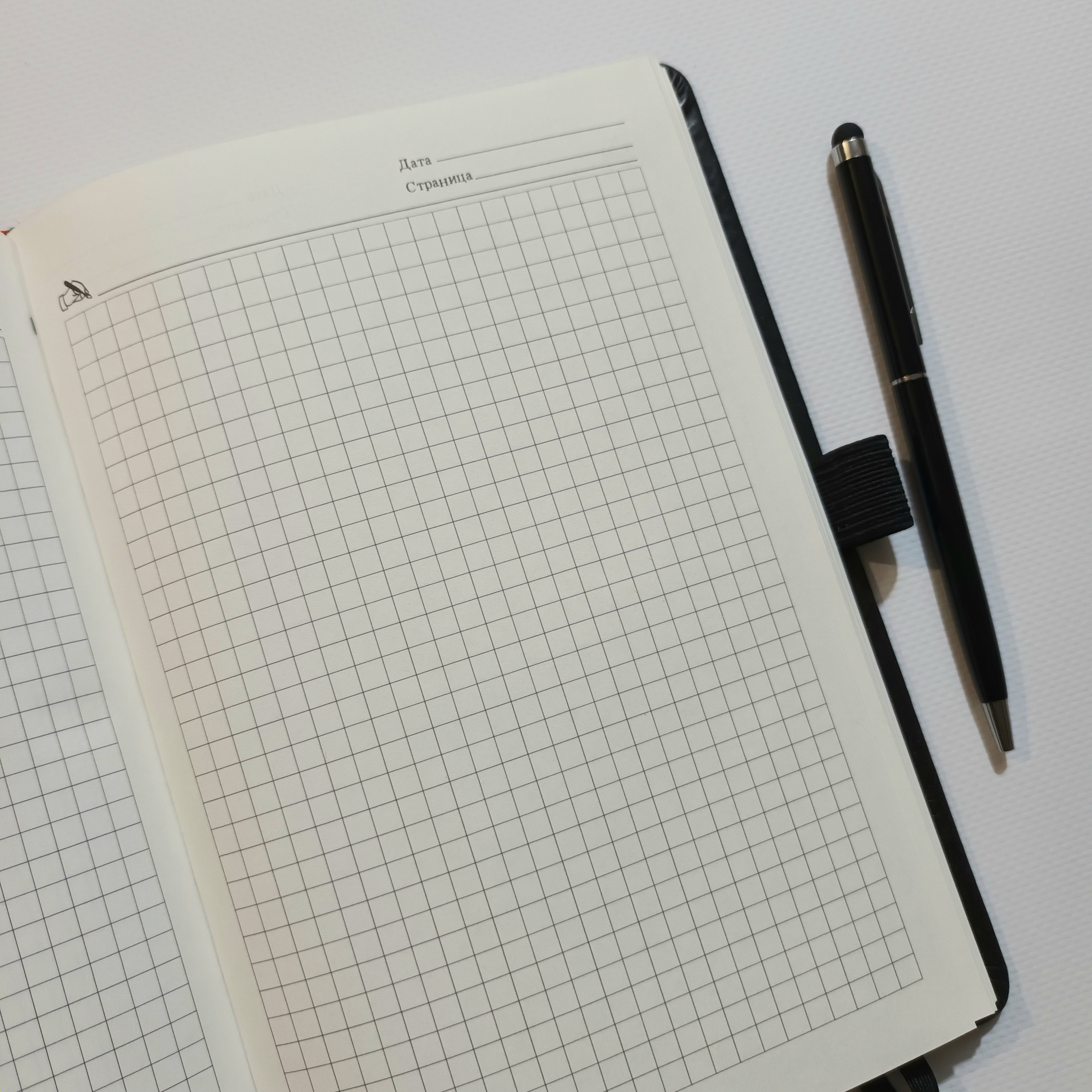 ------------------------- обкладинка: замінник шкіри, тверда; колір в асортименті червоний, фіксується резинкою; розмір 145х210мм. паперовий блок в клітинку; одна стрічка-закладка; комплектація: кулькова ручка зі стилусом.