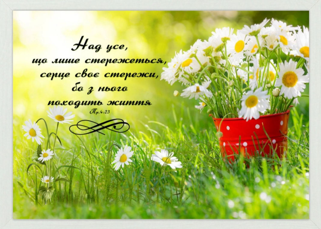 Картина формату А4 (32х22 см). Яскравий малюнок з біблійним текстом.