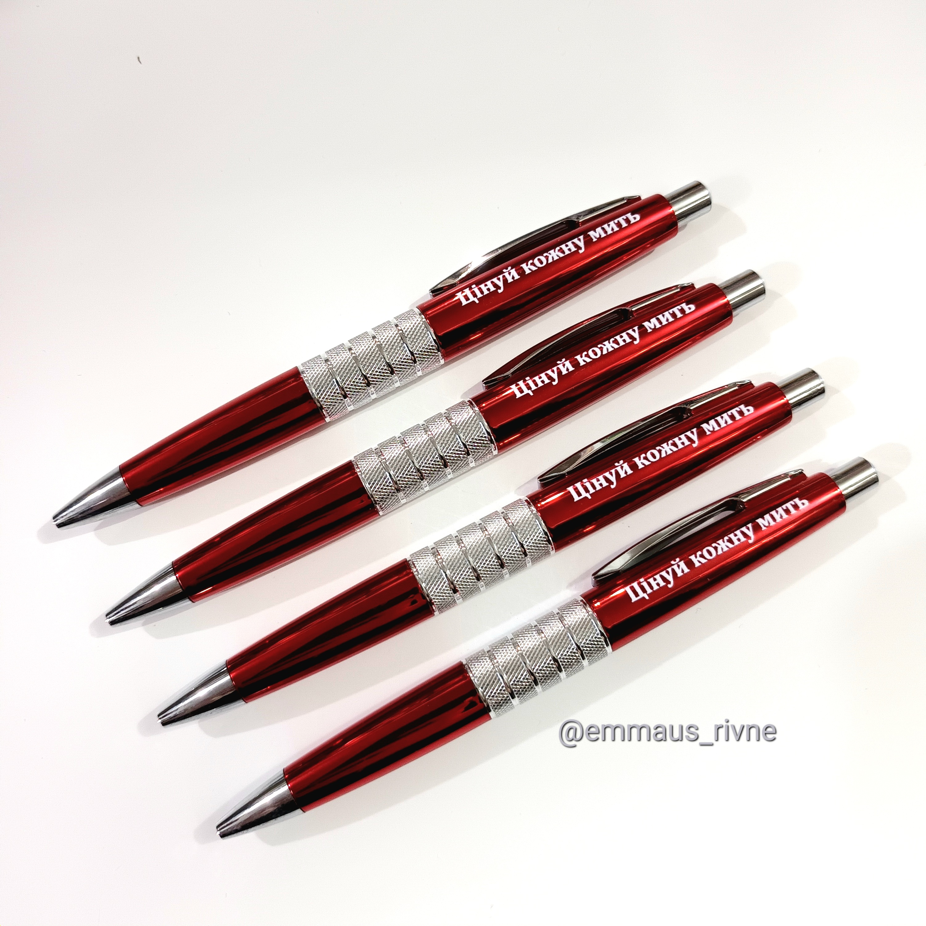 Кулькова ручка в червоному корпусі. Глянцева поверхня. Імітація металу.