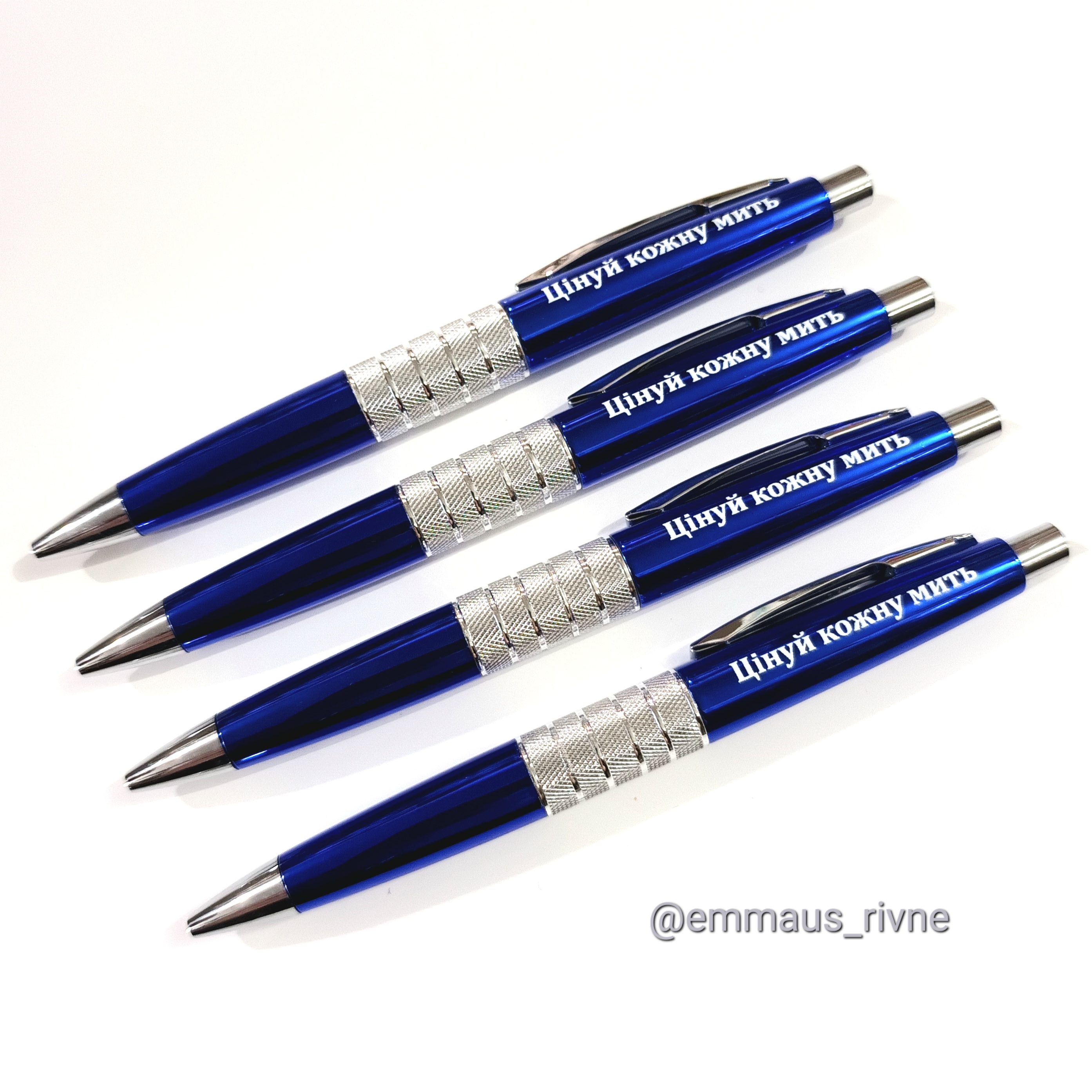 Кулькова ручка в синьому корпусі. Глянцева поверхня. Імітація металу.